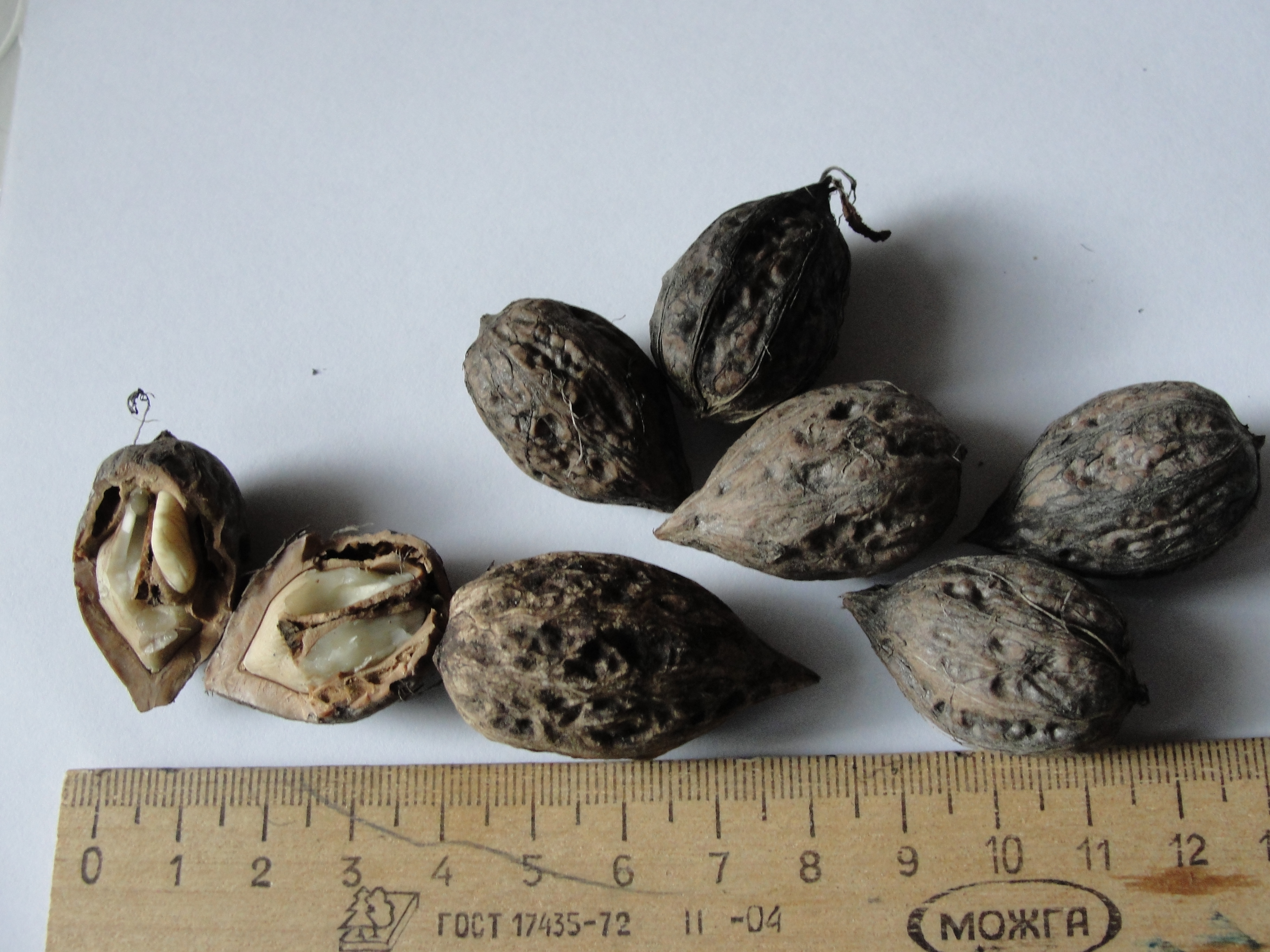 К чему я это говорю?.. Если вам встретиться, например, в парке или близ города маньчжурский орех, то имеет смысл проверить его плоды на предмет извлекаемости ядра и его (ядра) размеров. Довольно высока вероятность, что вам попадётся отборный маньчжурский орех или его гибрид с близкими видами (орехом Зибольда или орехом Сердцевидным) или это будут сами орехи Зибольда или Сердцевидные (данные виды можно отличить лишь по плодам). Найденные отборные формы с хорошим извлечением крупного (для данных видов) ядра предлагаю пересевать и рассаживать для интродукции и расширения ареалов этих орехов.
