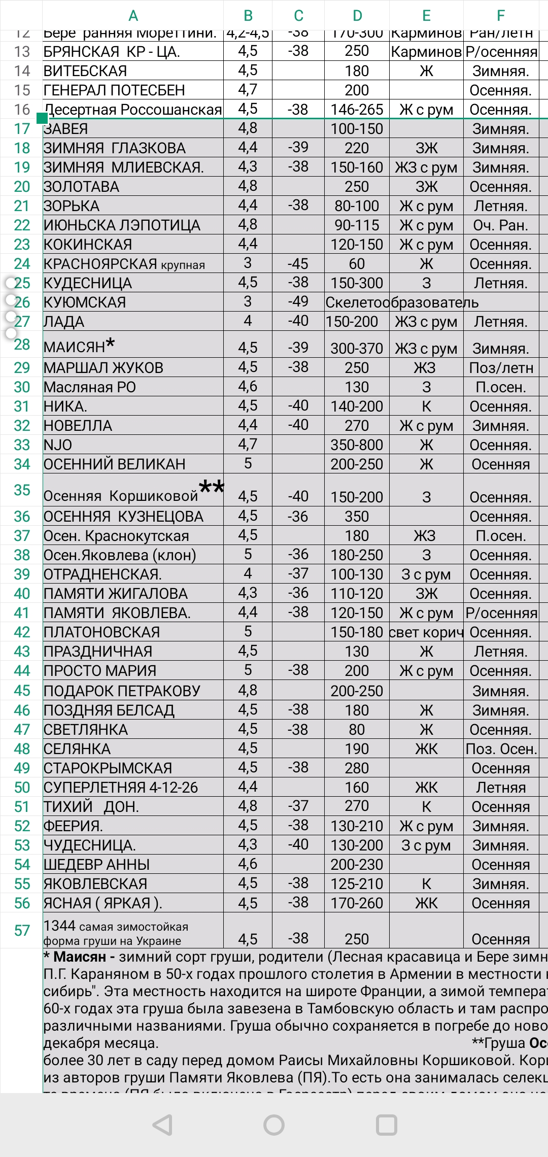 Приведу данные из книги «Груша Исходный материал генетика селекция» Мичуринск-Наукаград РФ, Кварта 2006г., а вы уж решайте сами.