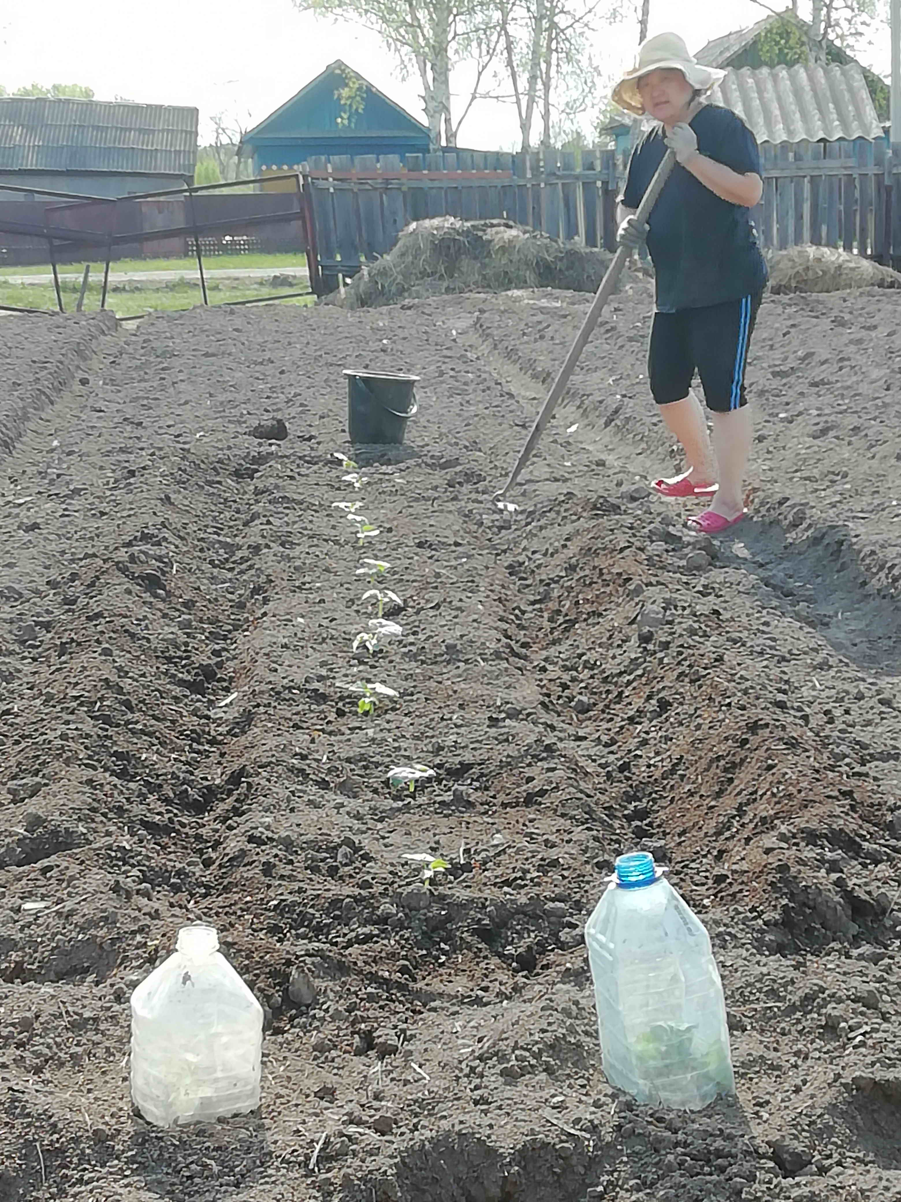 Я приболела, попросила его лунки выкопать. Рядок получился, как мокрый след от быка