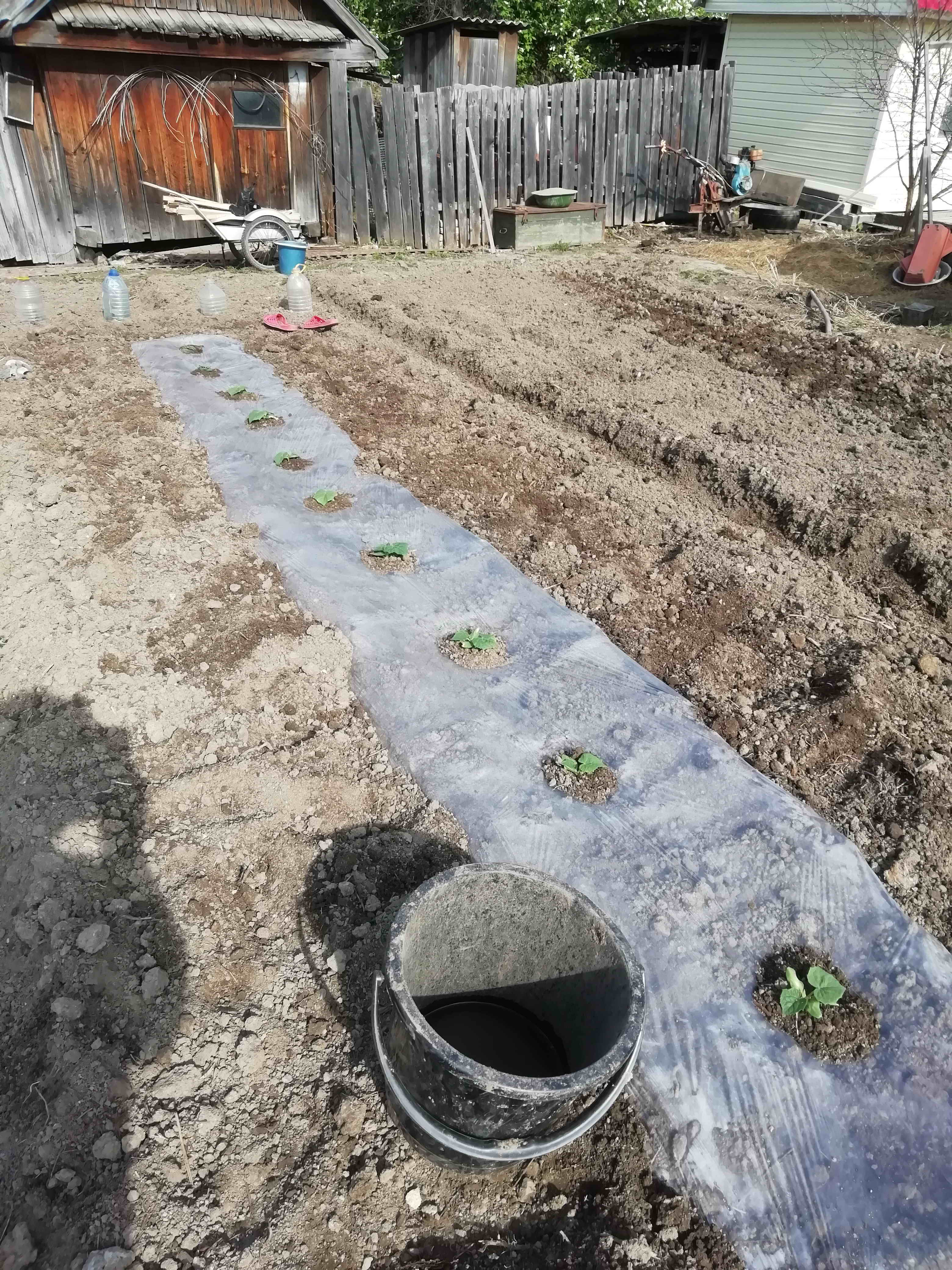 И всё-таки всех призываю именно мульчировать землю. Попробуйте хотя бы пару лунок накрыть куском плёнки метр на метр. У нас всё Приморье раньше садили и огурцы, и арбузы, натягивая плёнку на дугах. Мы молодые были, ленивые, только поженились