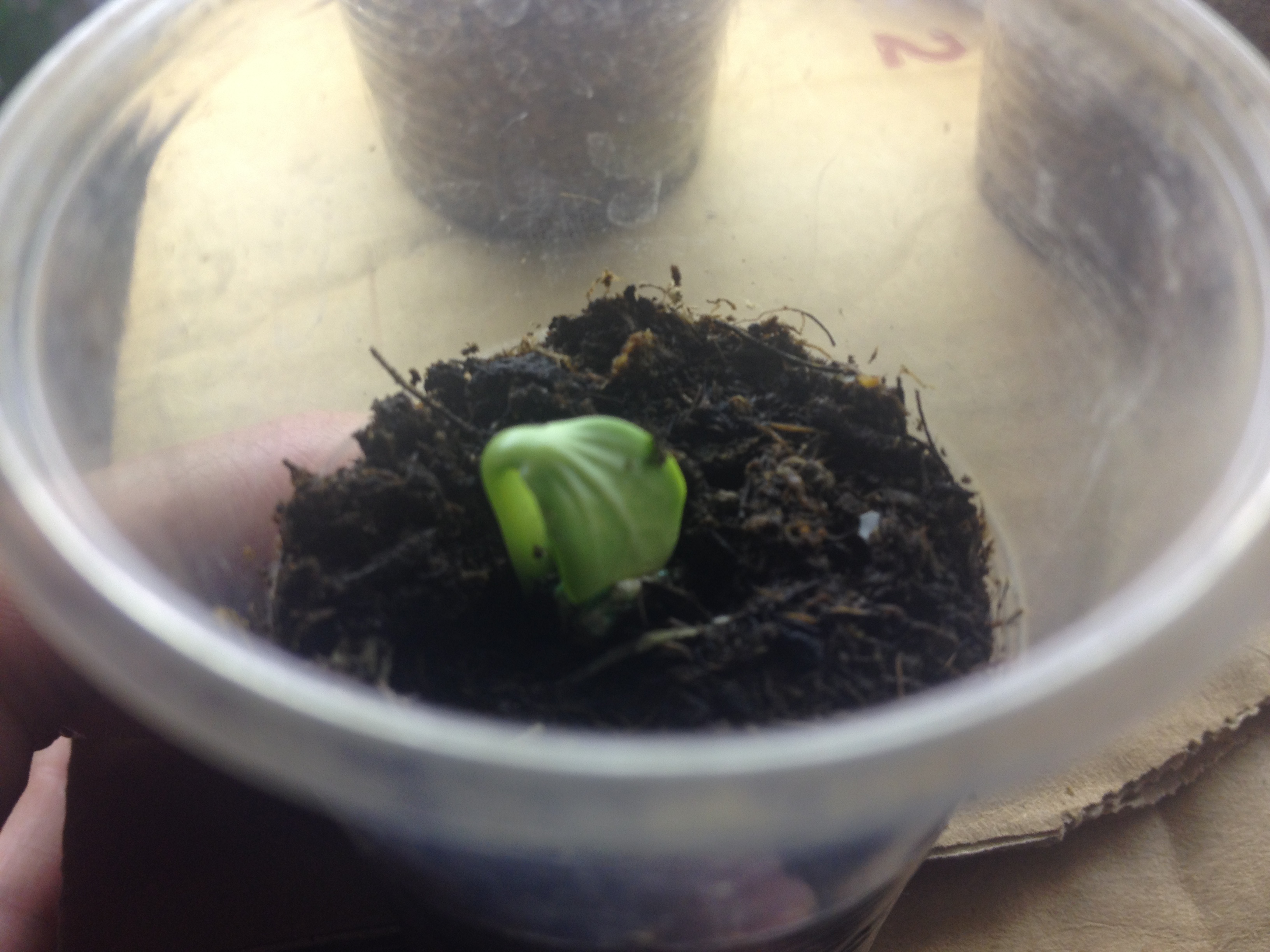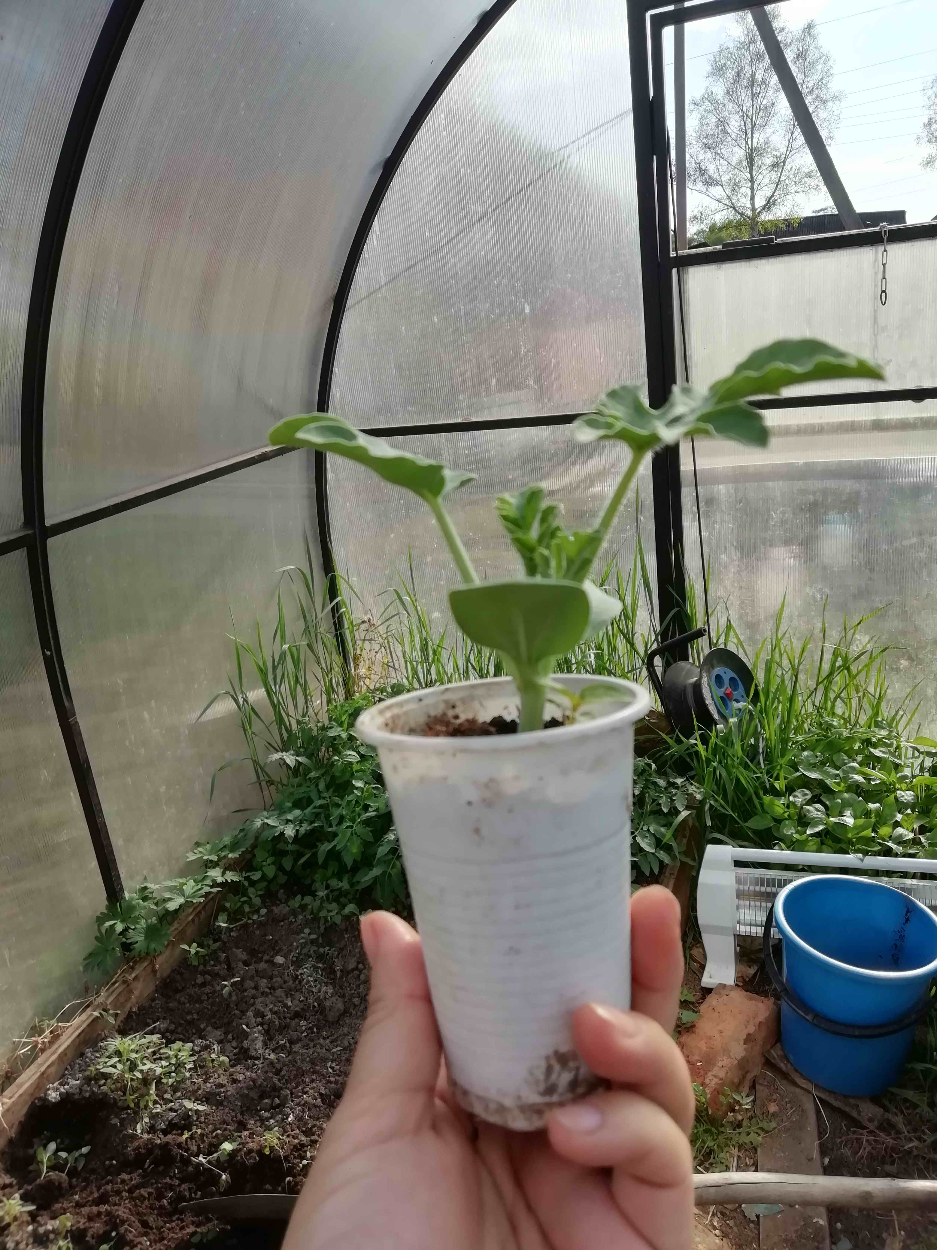 Завтра покажу, какие у меня в теплице в стакашках, если не замерзли. Оставляла щель во всех теплицах, когда уезжала. Посеяла ещё немного, тока всходят.