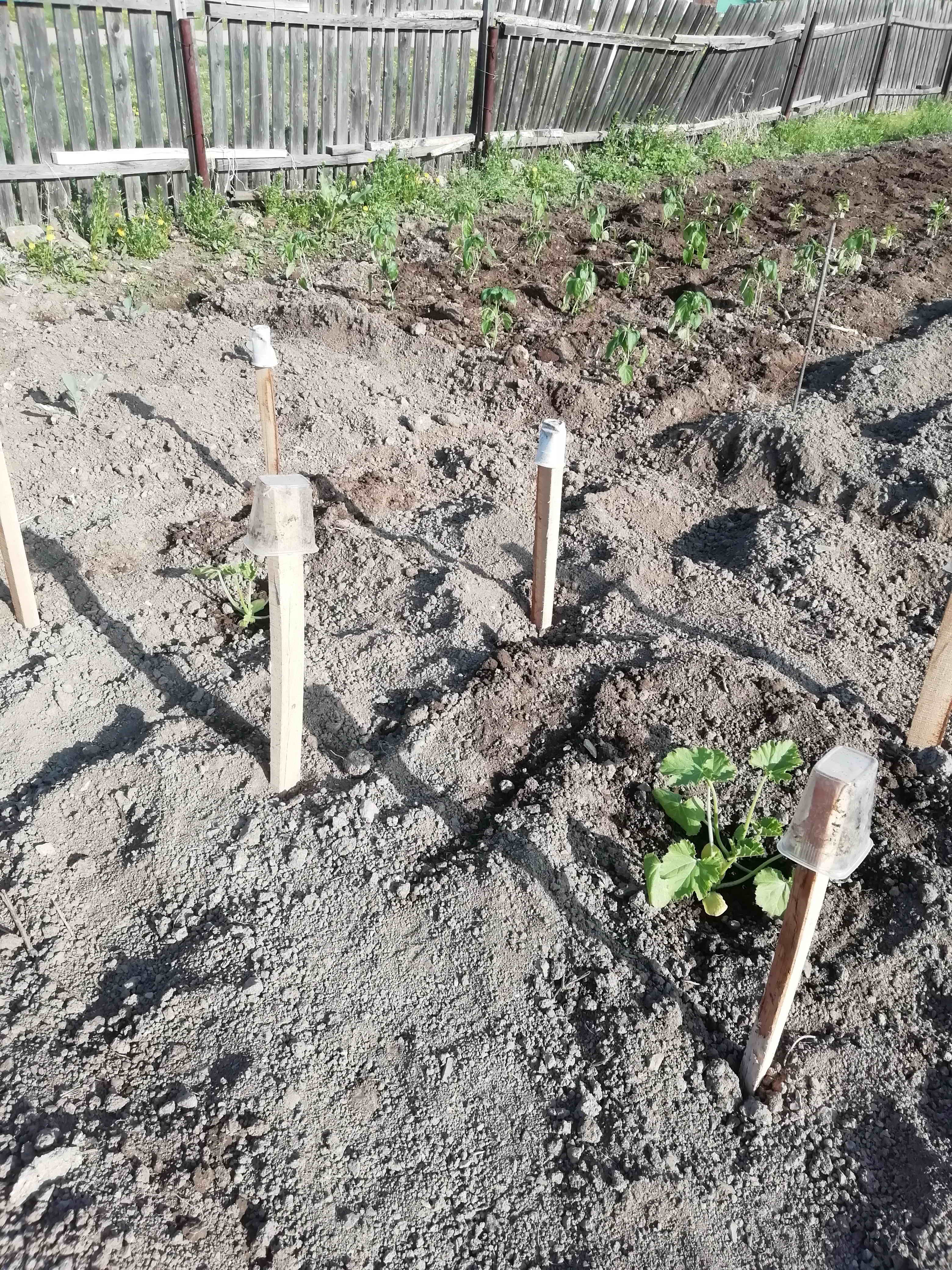 Сделала 4 достаточно глубокие лунки, налила в каждую по литру воды, потом бросила семечки, присыпала землёй