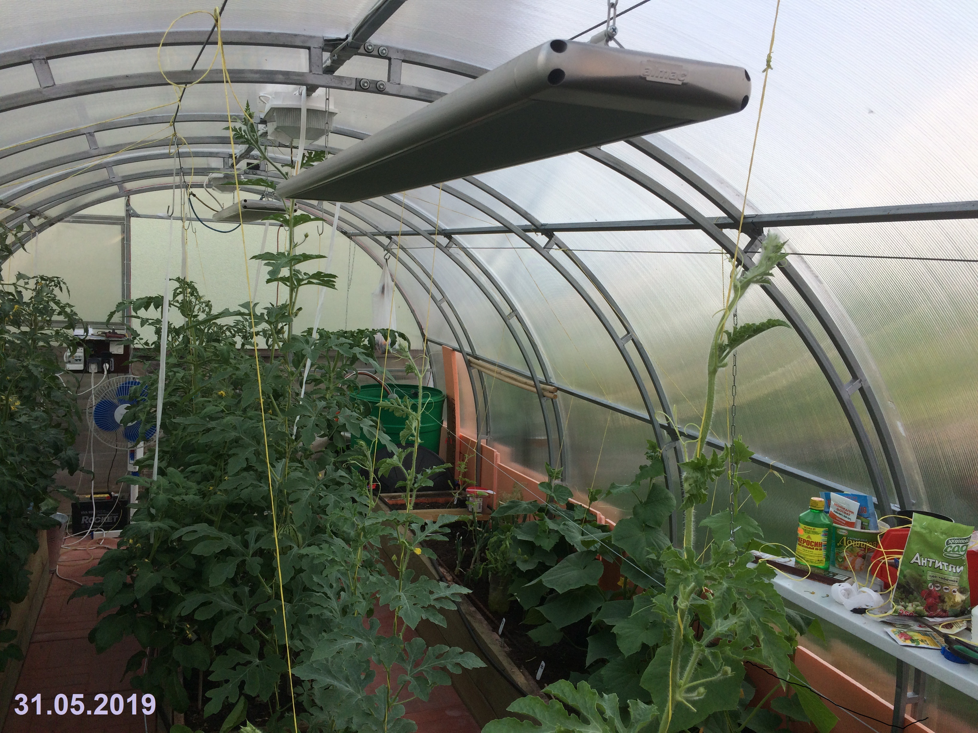 Та рассада, которая 50-70 см сидит в литровых емкостях и была привита раньше.Надо было оценить всхожесть и сроки для основной части растений. Да так и осталась "подрастать". Оставил для оценки "успешности" развития такой рассады, ранее так никогда не делал и по итогам этого сезона оценю- стоит ли так поступать. Основная рассада арбузов в стадии 4-6 настоящих листьев и дыни такие же. Размером около 15-20 см. Может тоже уже перерастают, но я часть (13 корней ) уже высадил. Остались еще 22 штуки на другую грядку. Все в литровых емкостях. Лагенария для выгонки на семена- та в 2-х литрах и размером около метра. Листья как блюдца.Прищипнул-гонит пасынки- надо срочно в сад увозить, а то в машину не влезетновичок-любитель писал(а): ↑14.05.2019, 11:17 Никогда не держу рассаду до таких исполинских размеров - 50 см![]()