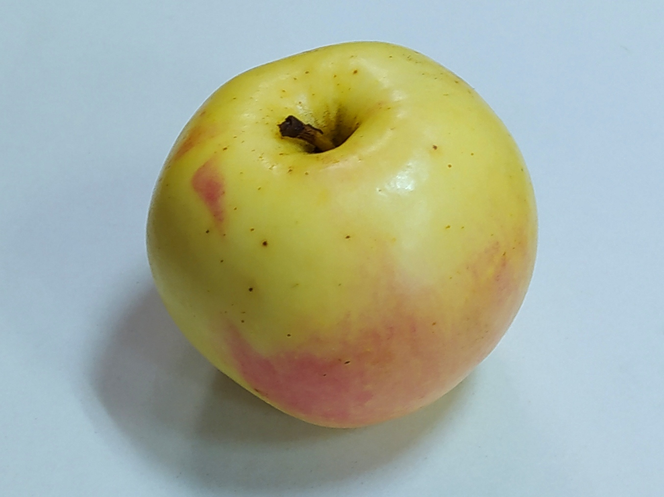 Еще один потомок Голдена – Брянское Золотистое. На текущий момент покровная краснота практически сошла на «нет», и внешний вид яблока вполне стал соответствовать своему официальному названию. Кожица на ощупь очень маслянистая, не сразу отмывается даже в горячей воде. Мякоть белоснежная, средней плотности, средней сочности, без аромата. Вкус простой, но очень приятный, кислоты совсем немного. В прошлом сезоне яблоки смогли долежать в подполе до начала весны. Этой зимой из-за частых оттепелей температура там заметно выше, на некоторых плодах уже стали заметны признаки увядания. По лежкости БЗ явно уступает ведущим зарубежным сортам, зато очень простое в выращивании – дерево практически не требует обработок от вредителей и болезней.