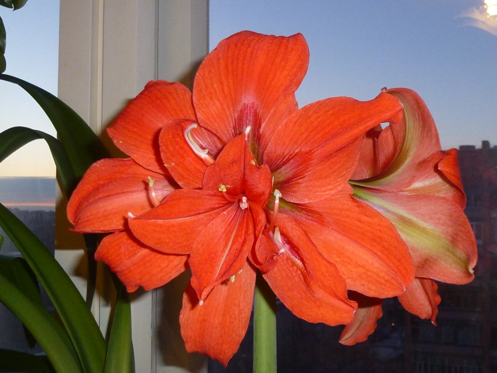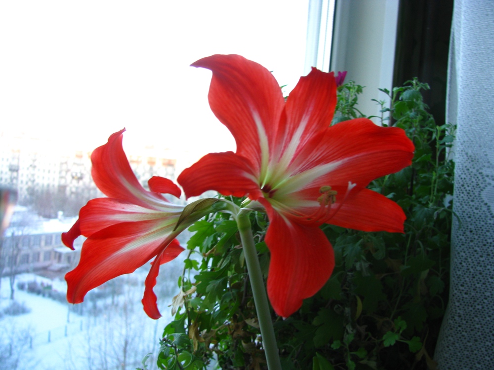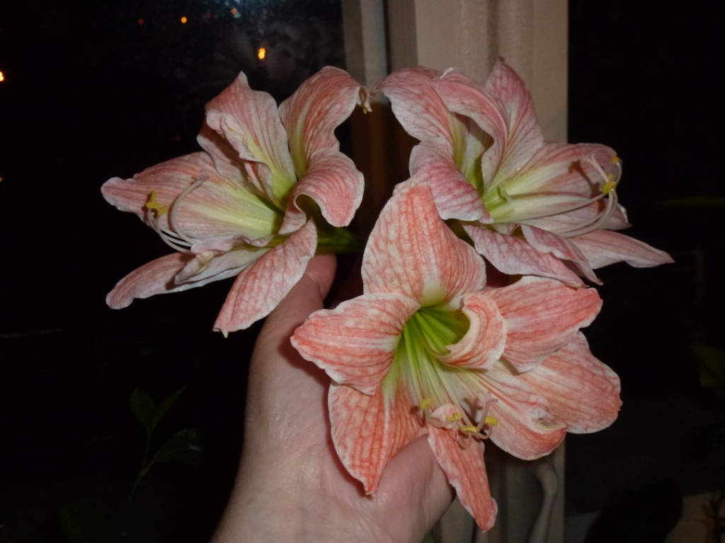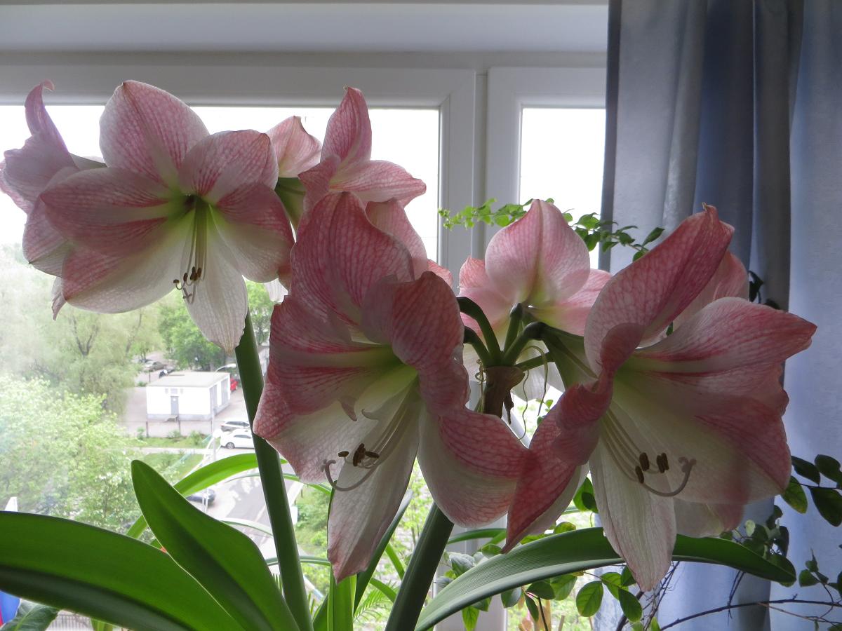 К сожалению, точно не знаю, гиппеаструмы ли, мне эти луковицы подарили и сказали, что гиппеаструмы..Женщина, которая подарила, держит свои на северном окне в частном доме с печным отоплением, то есть там достаточно прохладно, и у нее они цветут.