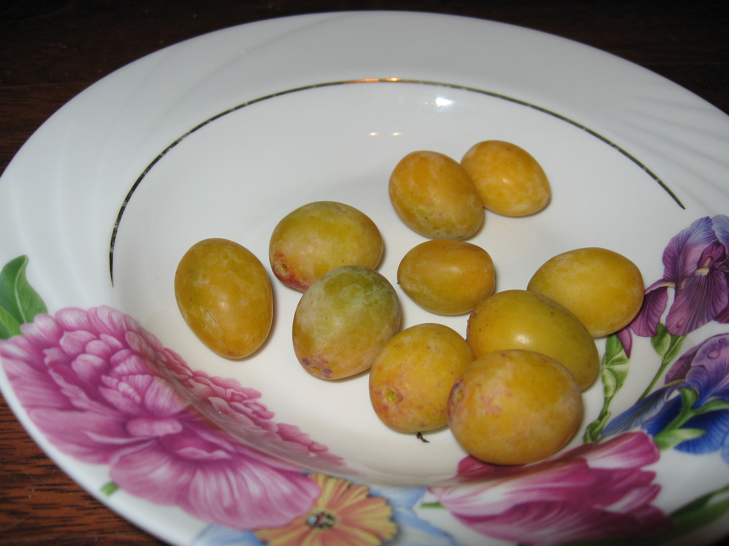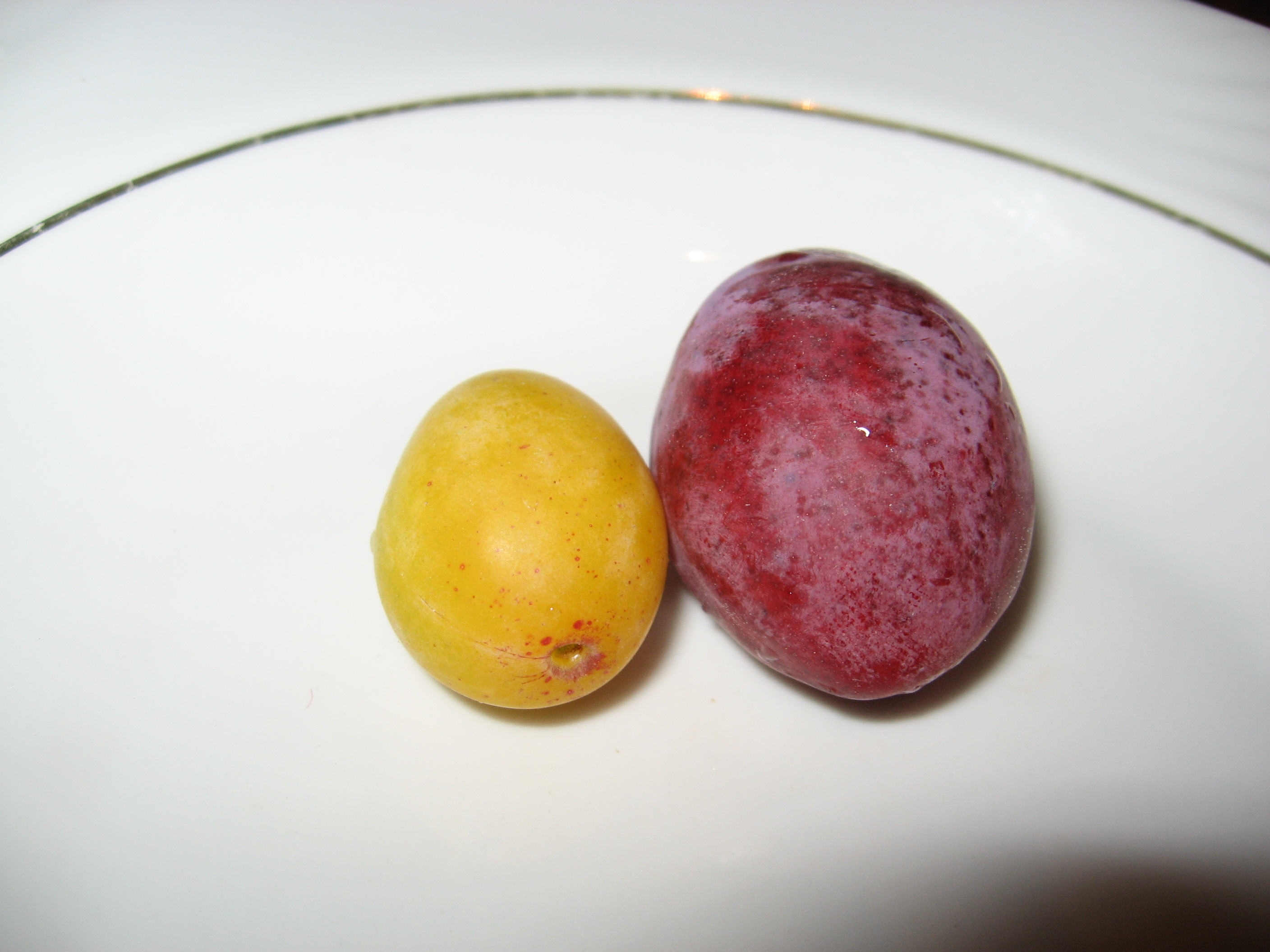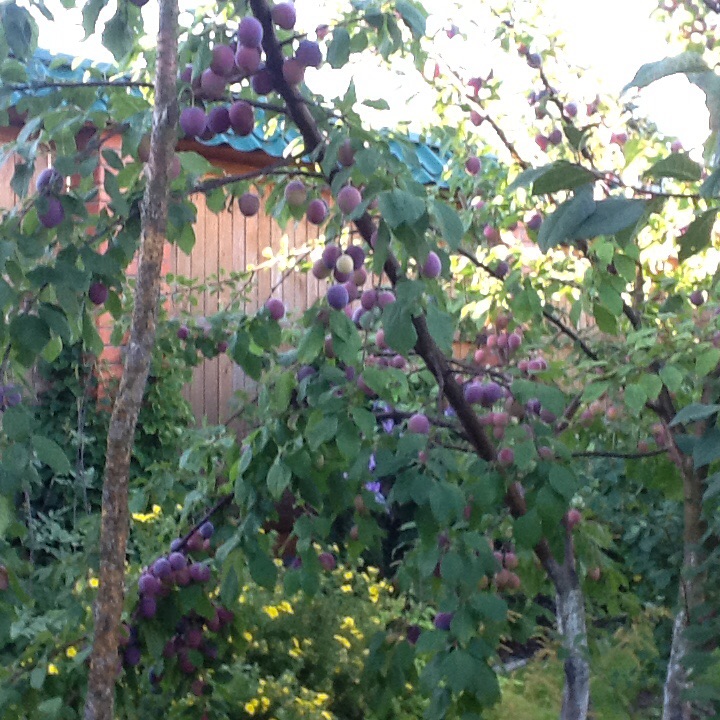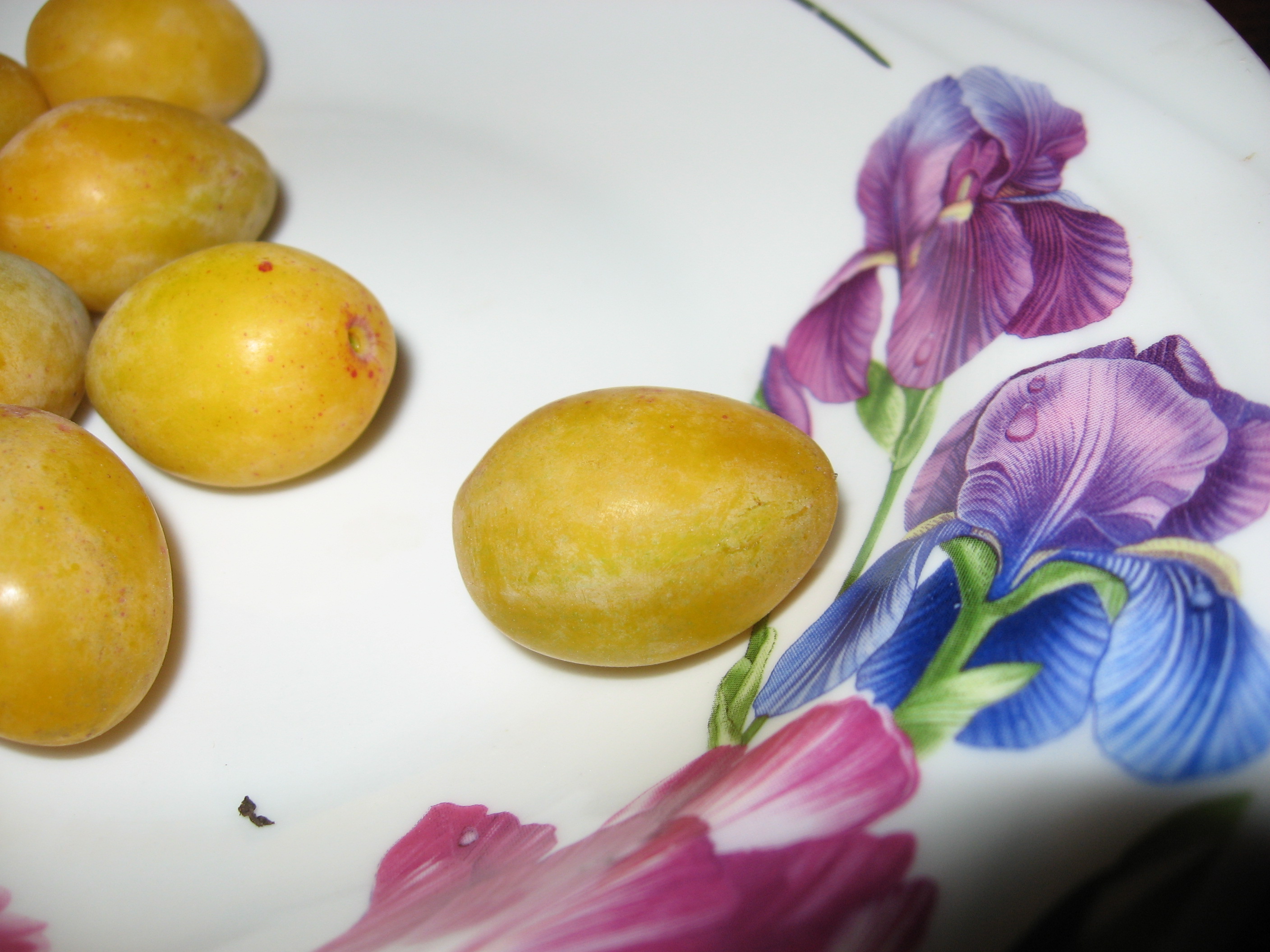 Товарищи, достались от прежнего владельца несколько сливовых деревьев, среди прочих - три дерева буквально небывалой красоты, невысокие, ровные, с кроной в виде правильной чаши, каждый ярус уже нижнего. Никаких морозобоин или камедетечения - я даже думала, это терн, пока плодить не начали. Сливы некрупные, желтые, круглые, без шейки, вкус кисловато-сладкий, с цветочным ароматом. Я б сказала "с абрикосовым", но нескромно. Косточка отделяется плохо. Определите, пжт, сорт, если это возможно. Спасибо.