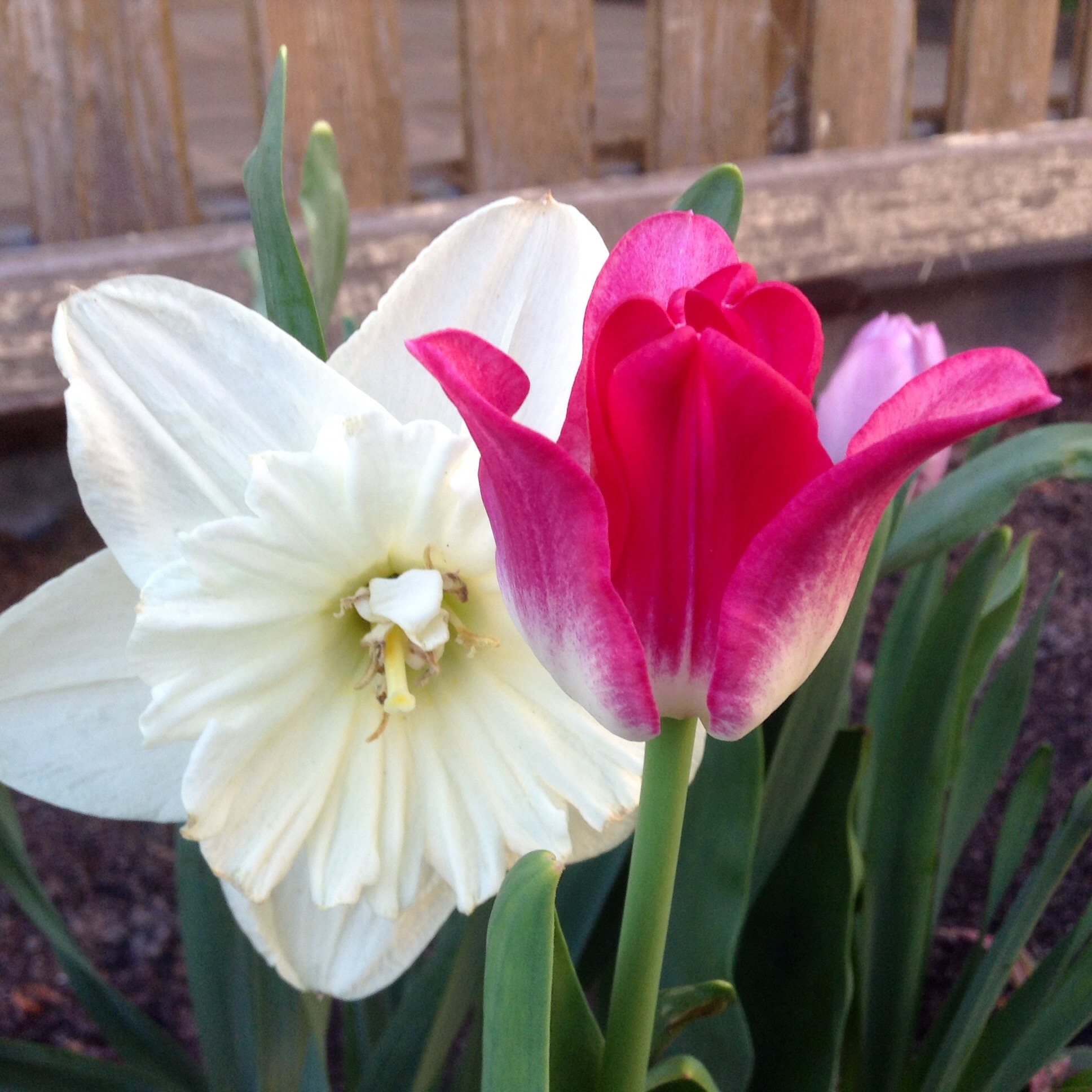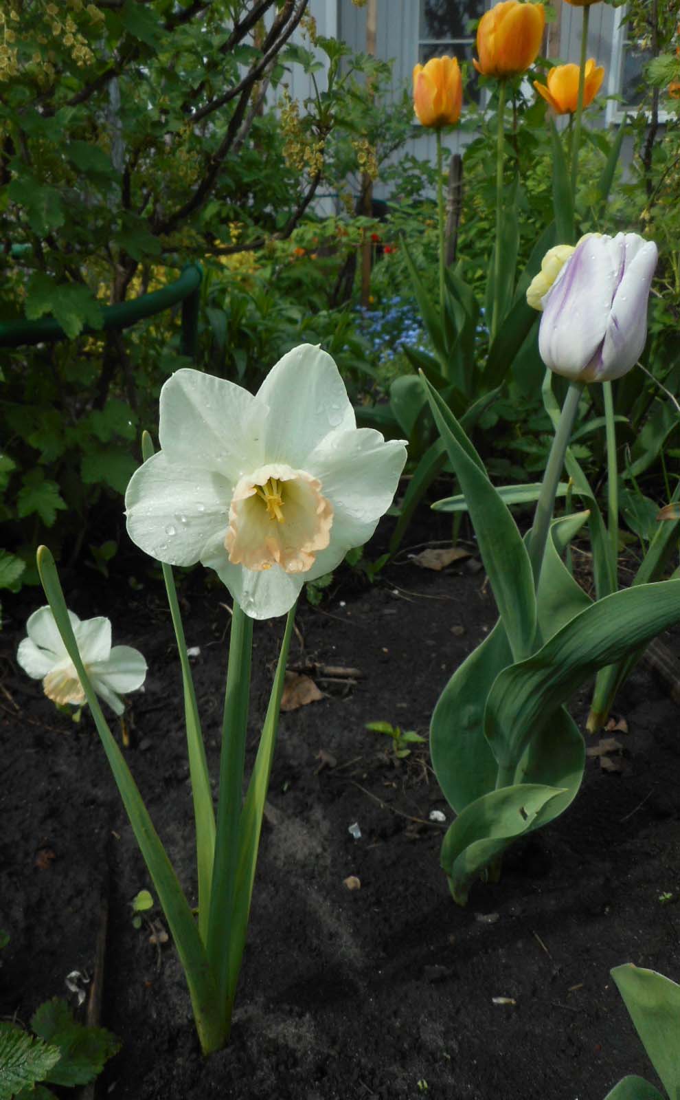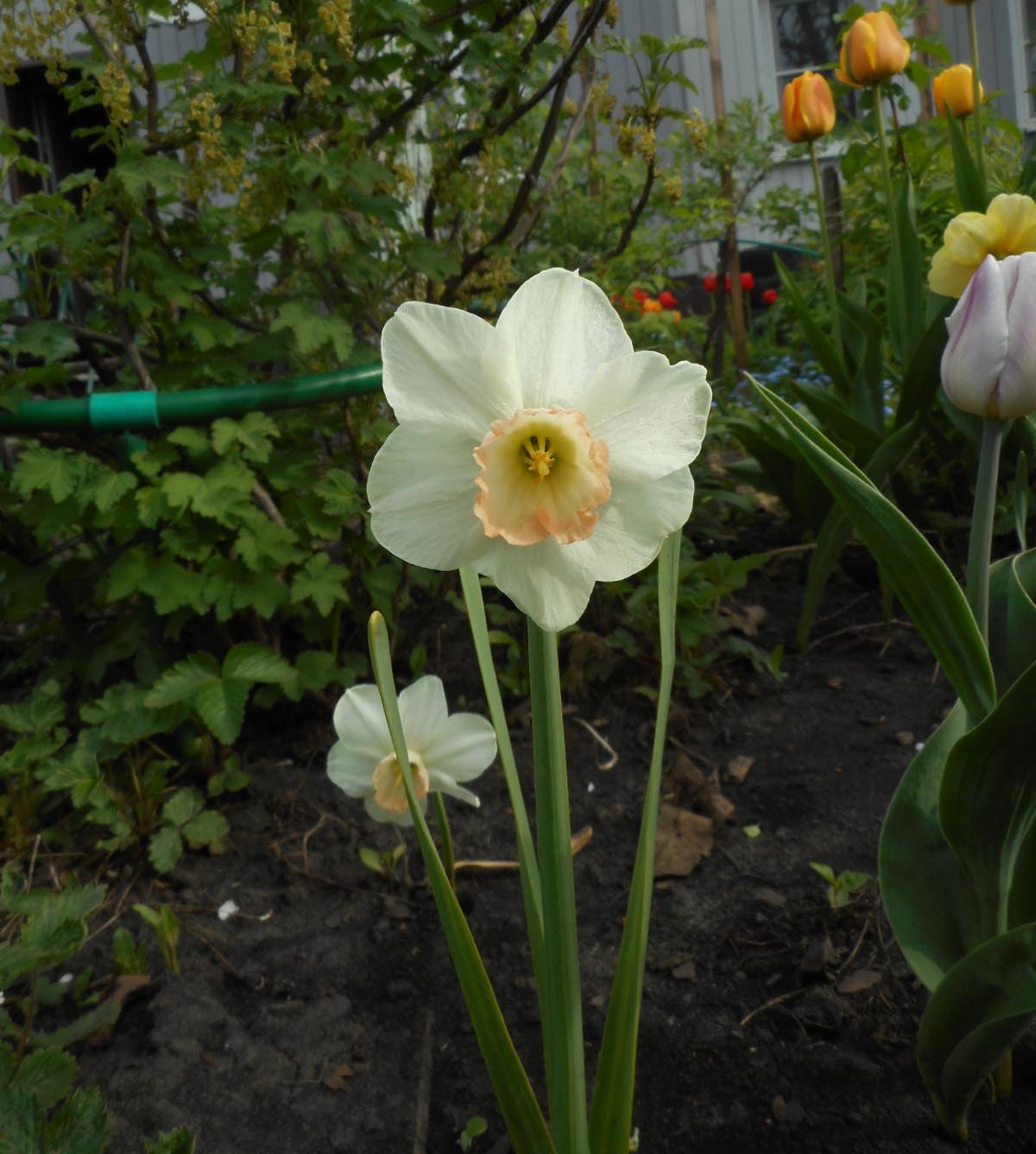 Цветут нарциссы из осенней закупки. Низенькие, но думаю разрастутся. Сегодня впервые была на даче, все неухоженное.
