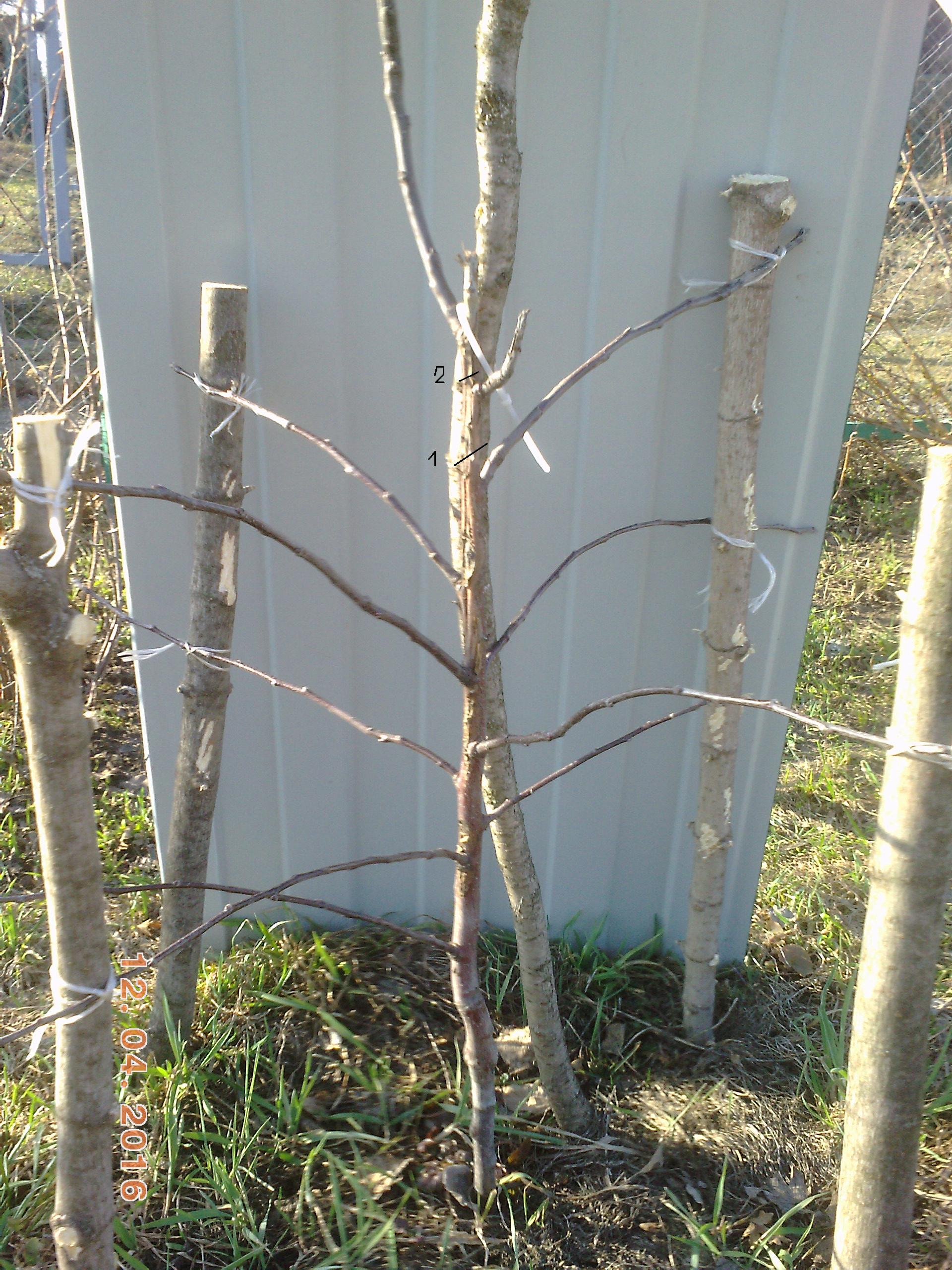 Вы прежде чем вопросы задавать сами на полученое вами фото смотрели??Зацените, плз, план формировки и обрезки яблони (3-й год).