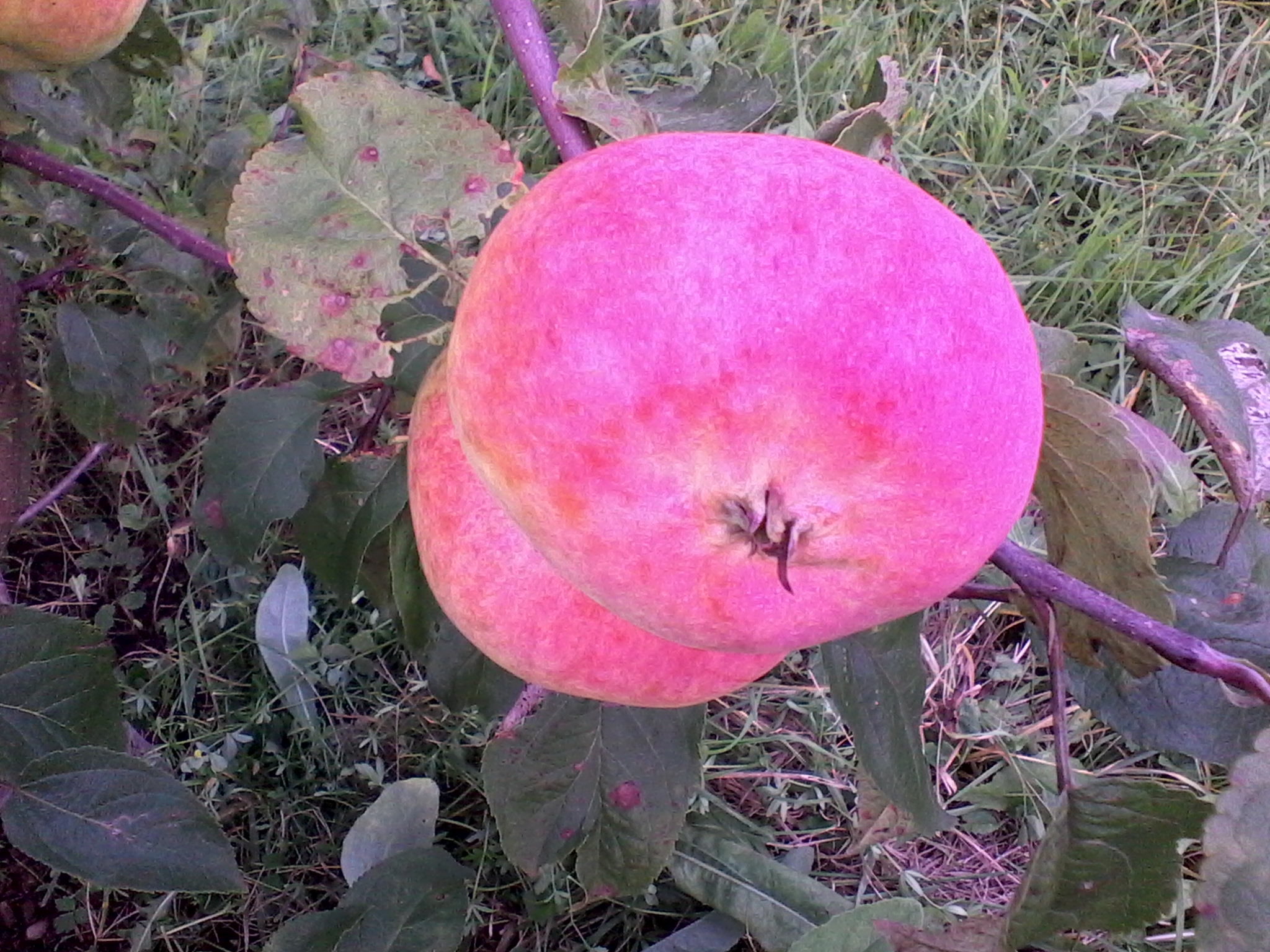 Bluegen писал(а):Вот еще одна загадка, растет во дворе у новостройки, привитое, высажено озеленителями. Дом не бедный, всякие декоративные формы, наряду с плакучими яблонями и рябинами, озеленители воткнули пересорт, видать с голландским или др. Импортных посад. Материалом. Дерево привитое, с аккуратной шаровидной кроной. Я через забор яблоки усидела в конце сентября и обалдела. Висят такие одно мерные зеленые бомб очки. Зашла туда нарвала несколько яблок, видно что зимние, у нас такие в м. О. Не растут. С вощеной поверхностью и подкожными зелеными точками. Воронка чуть оржавленая. Стала искать в инете. Неужели мутцу.?да еще в Москве и дерево не больное, веселенькое. При съеме были кисловаты, скорее всего САТ для него маленькое. Но как выжило целым деревом, вопрос?