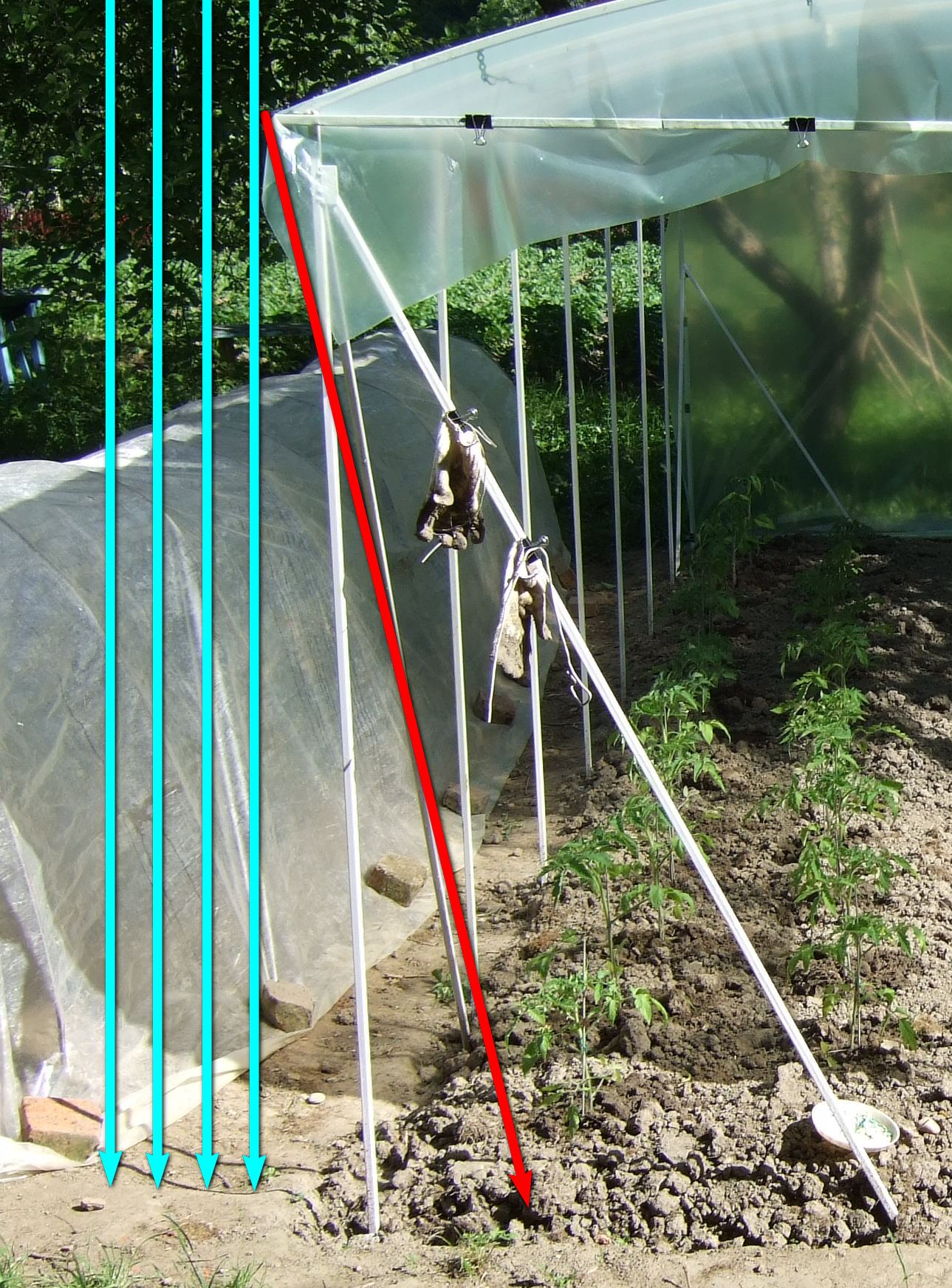Таня, если бы меня не устраивал мой навес в моих условиях, то я бы посадил томаты дальше от края. Ведь я делаю сам и для себя. Я же не враг себе. Всего делов то - переместить проволоку для подвязки дальше от края. Но я и в новом навесе сделал так же
