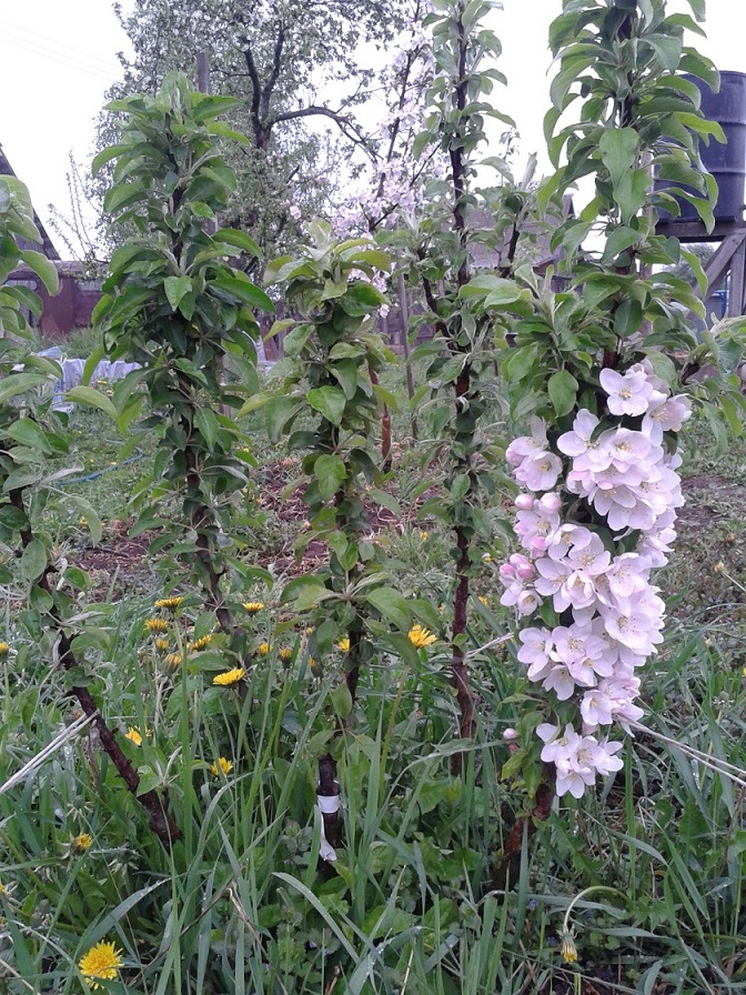 Приведу пример. Привика в высокий штамб зимостойкого антоцианового подвоя, выше 2 метров, даже сорт Важак (Важек-Макентош), ежегодно плодоносит уже несколько лет подряд. Без укрытия на зиму. При том, что на этом участке вымерзают многие зимостойкие даже свердловские сорта обычные, ни то что колонновидные московские.