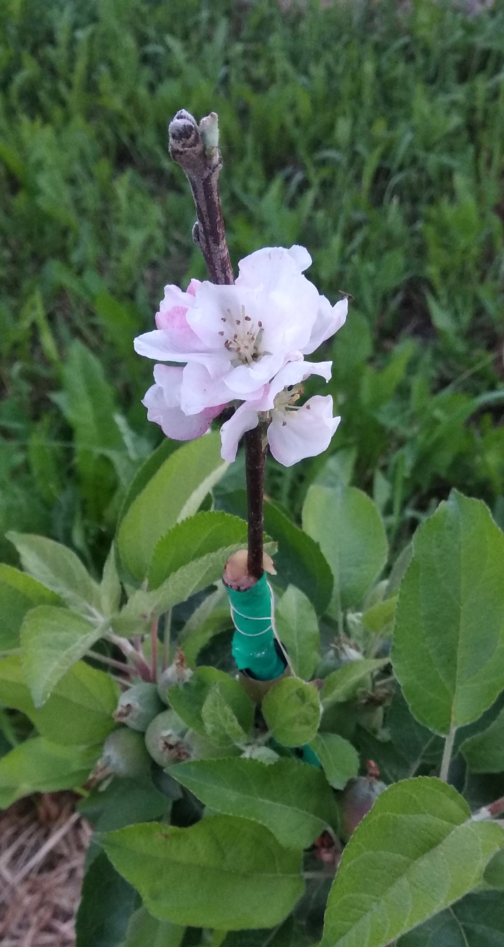 В куст яблони-дички привил 5 сортов колонн из Орла. Только один из них на второй год решил порадовать цветами (на сегодня уже отцвели). Надеюсь, что будут и плоды.