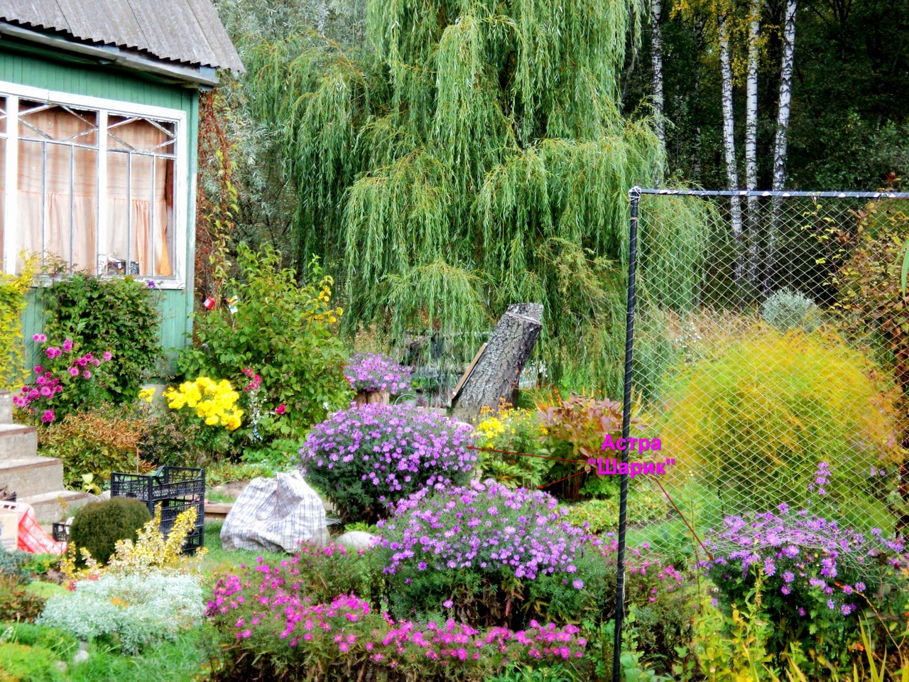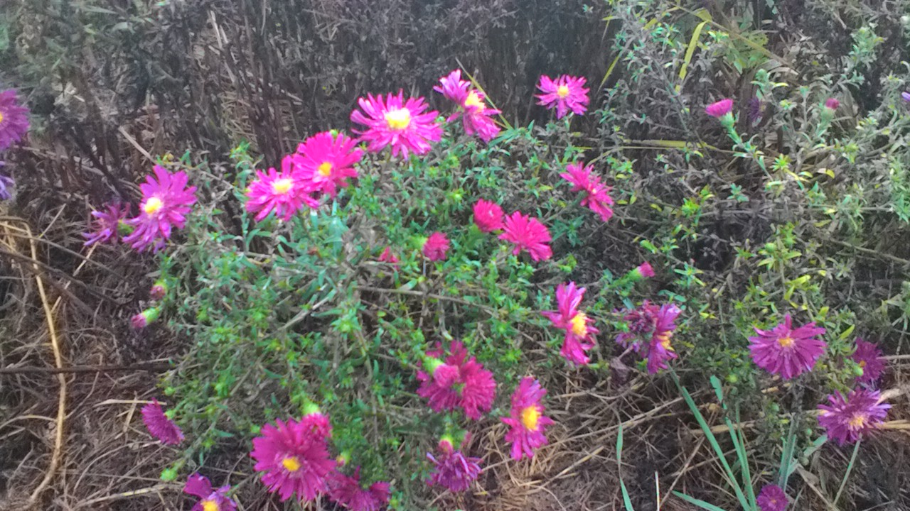 Астра кустарниковая у меня есть. Такого же малинового цвета, но она намного ниже и мельче. Голубая ещё ниже.