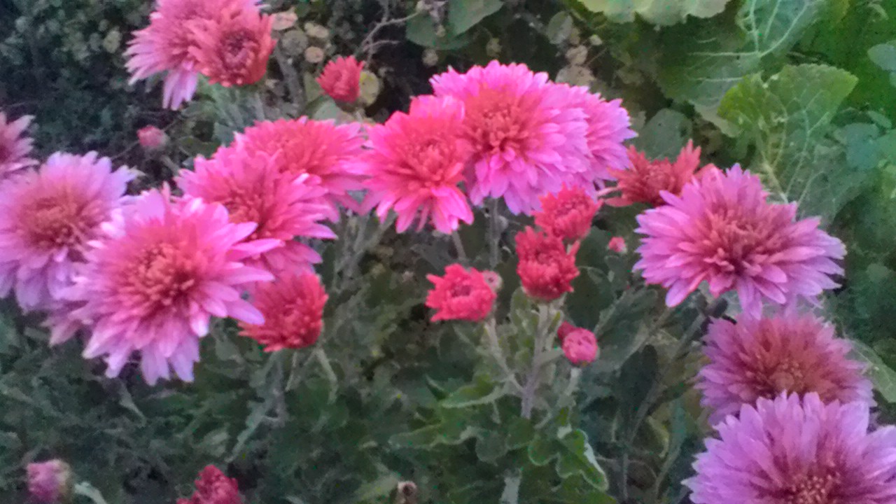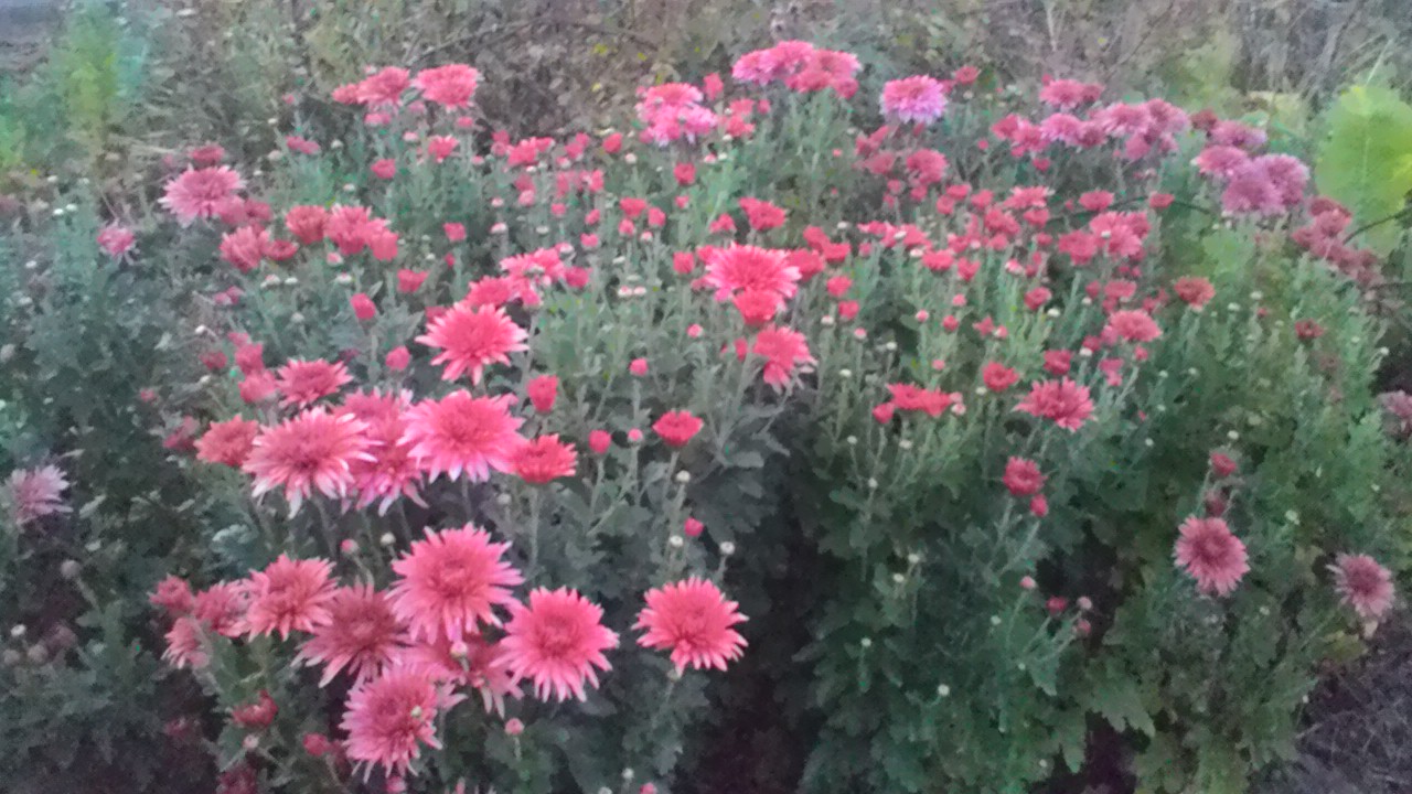 У меня как-то поздно хризантемы в этом году зацвели. Мультифлора вообще штучно цветет.