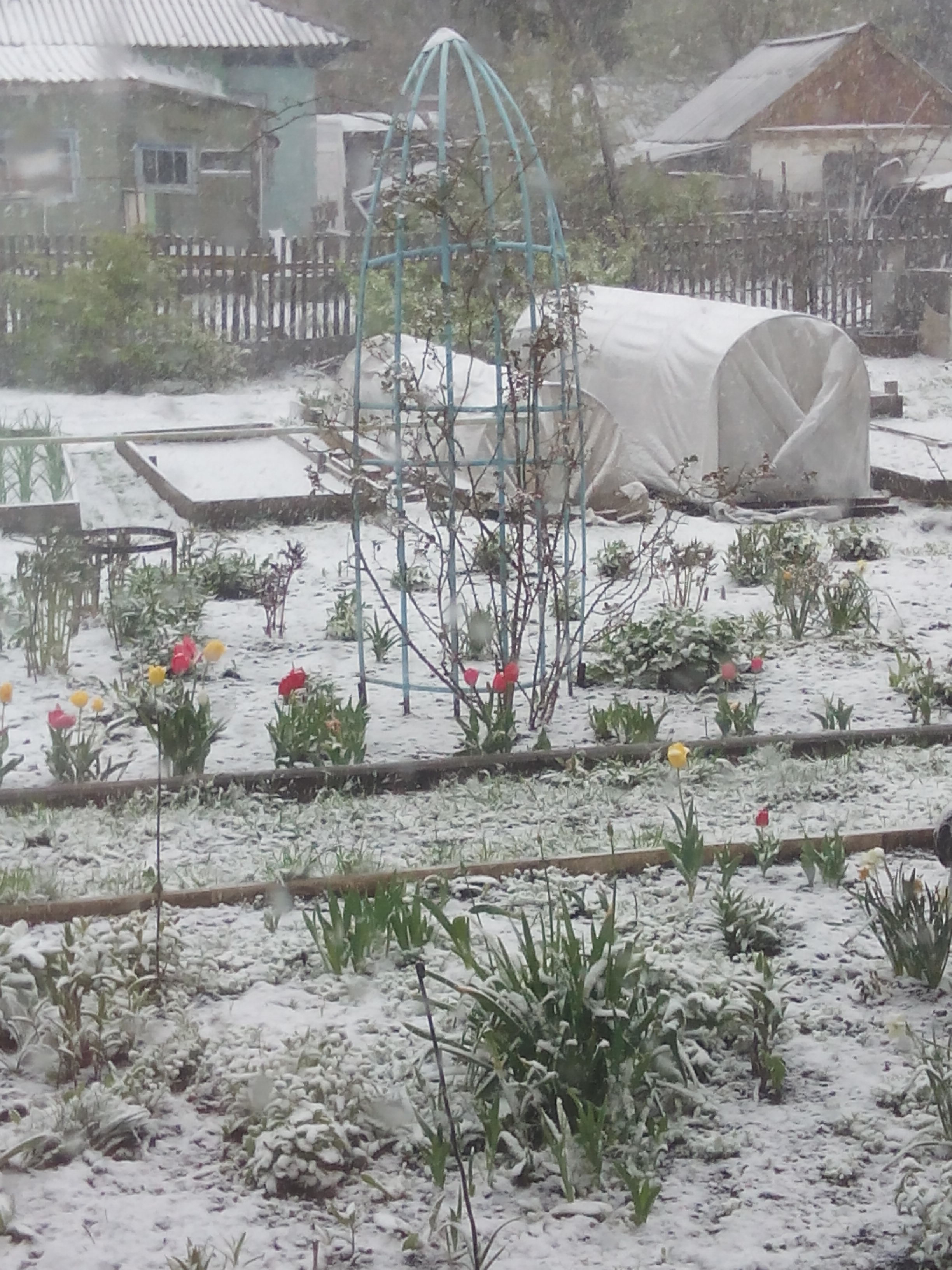 А у нас ветрище со снегом. Всю теплицу упаковала. Обещают мороз. Пионы, розы, флоксы и всё остальное наверное померзнет. И укрыть нет возможности. Как жалко.
