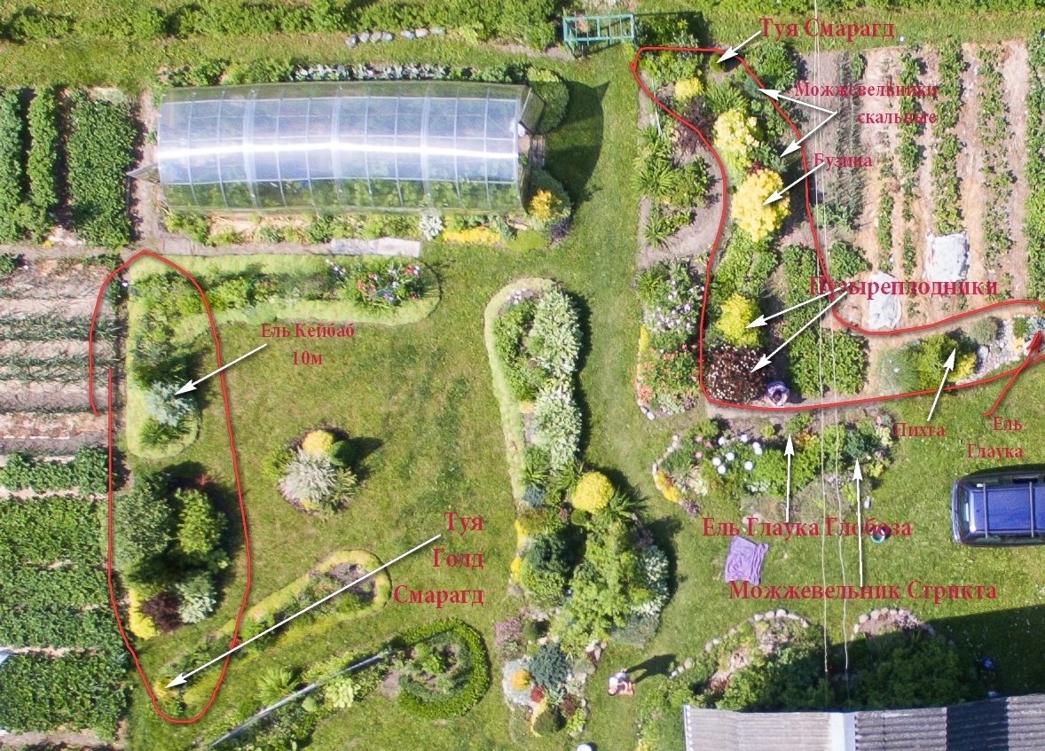Однозначно откидываем! Сажай побольше хвойников, с учетом, что если внуки не будут заниматься цветоводством/овощеводством, то просто заравняют все клумбы, а хвойники будут обрамлять лужайки