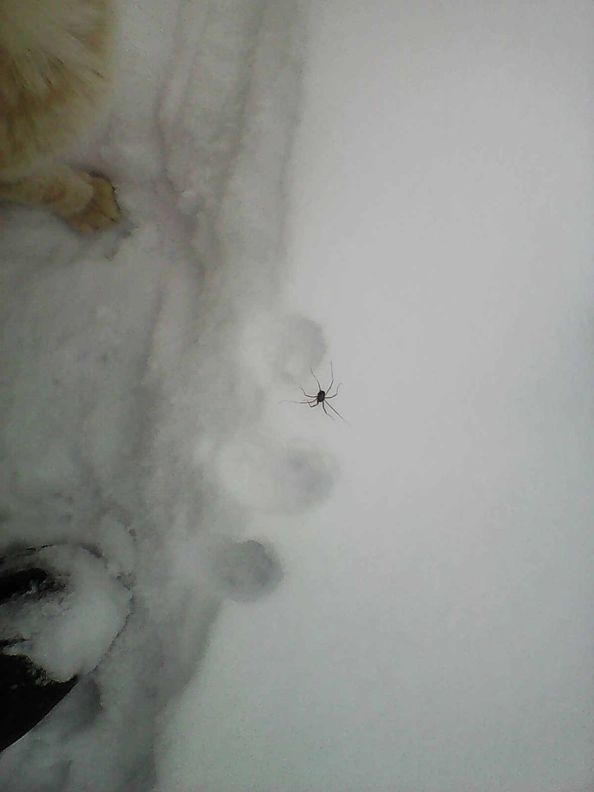 Смотрю, по снегу медленно бредёт паук-косиножка, заболел наверное.