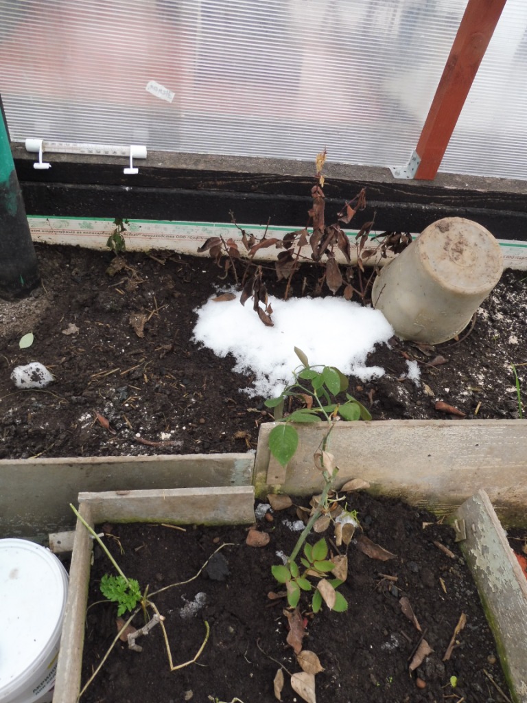 Птицы пешком ходят, отпечатки лап и земля видна. В теплице косточки кизила и другие косточки (в прошлом году удачно все косточки жерделя взошли)- наверно не взойдут, сорняки цветут, укорененные розы укрыть нечем - снега недостаточно. С Крещением