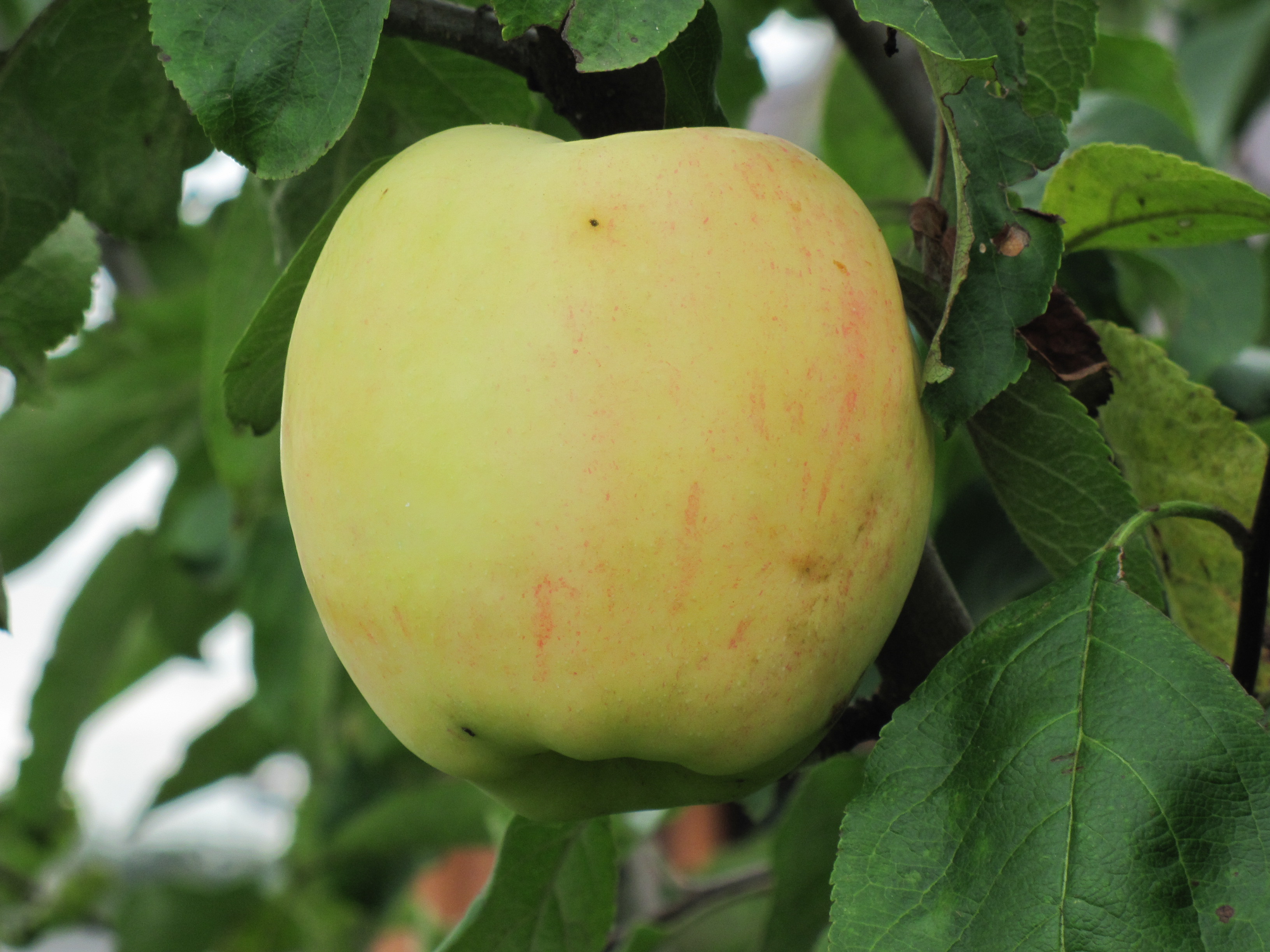 Что за сорт так пока не определил. Какой-то старый, раннеосенний, черенки брал с очень древнего дерева в Белоруссии. В обычные годы к этому времени уже созревает. Вот так