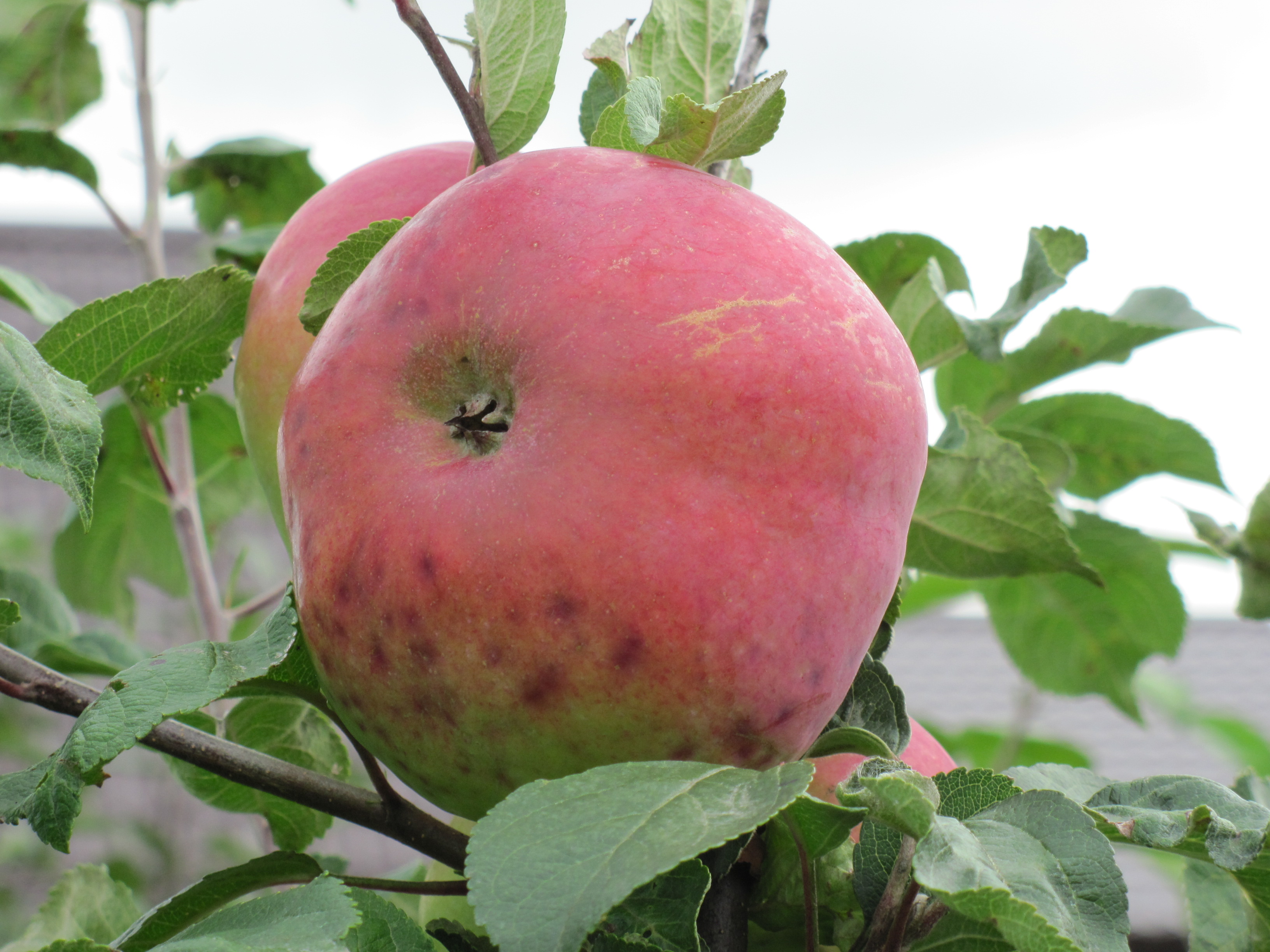 Апрельское - отдельные плоды тронула парша. Могло быть и хуже, с учетом недостаточной устойчивости сорта и особенностями нынешнего сезона.
