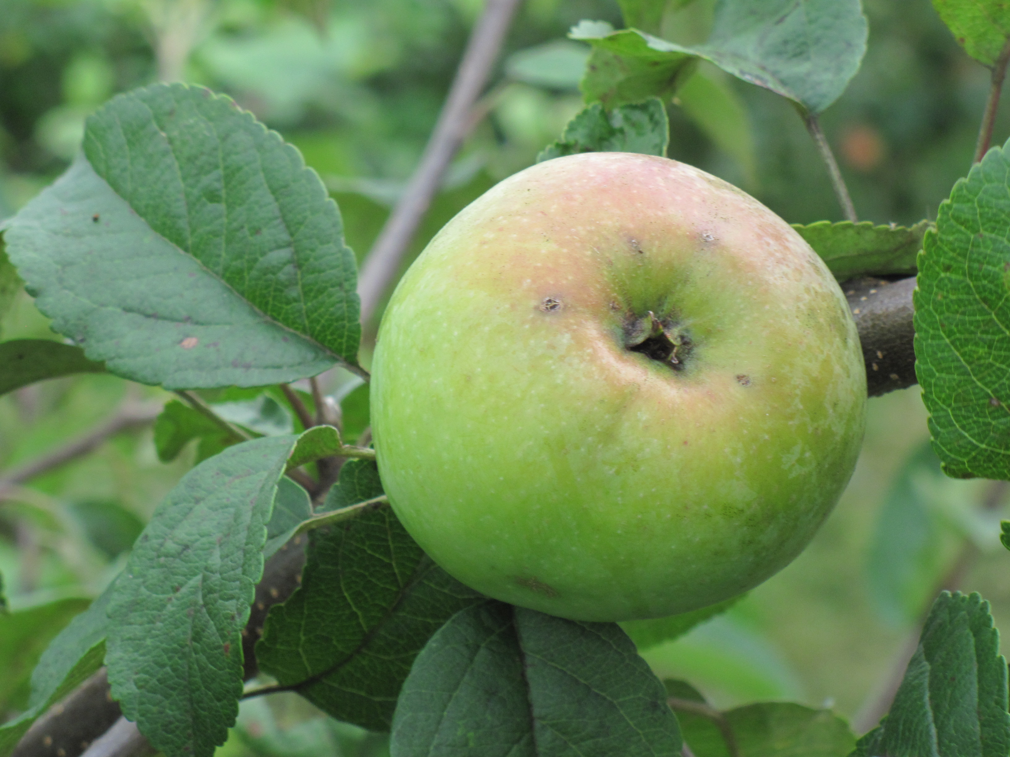В этом году получил первый плод его родителя Пепин Четвертый (Пепинка литовская х китайка), автор И.В.Мичурин