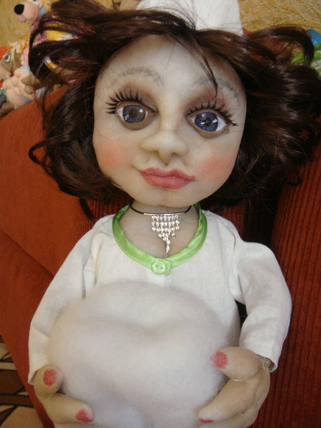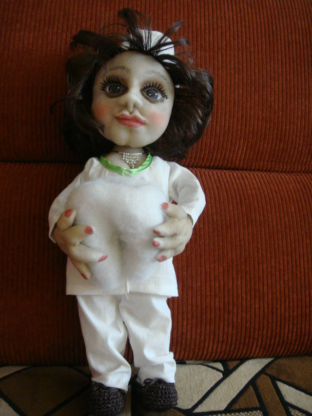 Это портретная кукла, тетушка мужа в молодости она стоматолог и я сваляла зуб