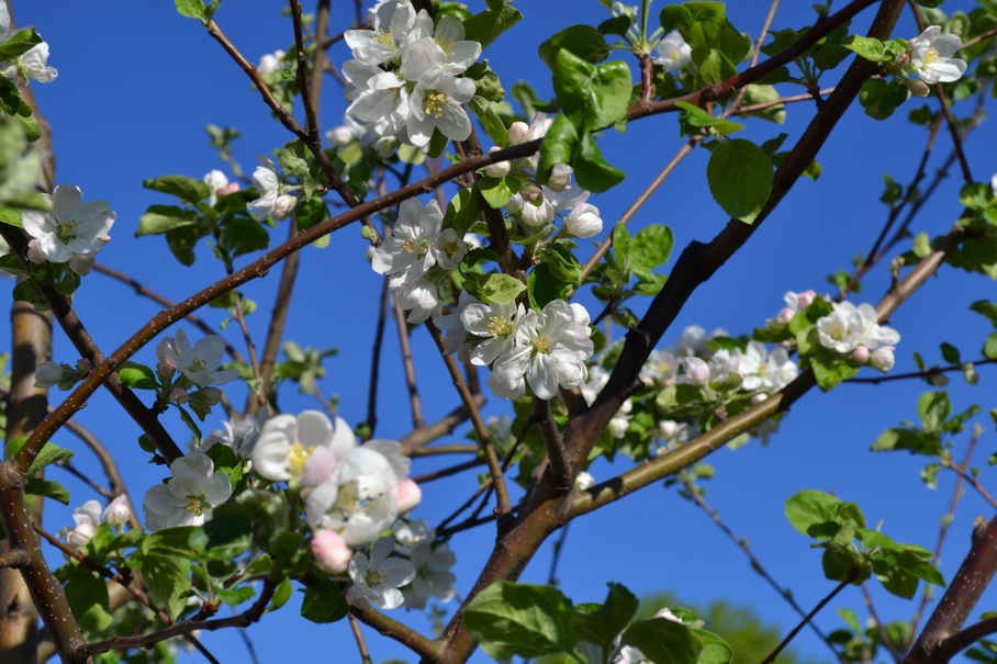 На дереве есть еще несколько сортов(Богатырь, Алеся). В этом году тоже цветут.
