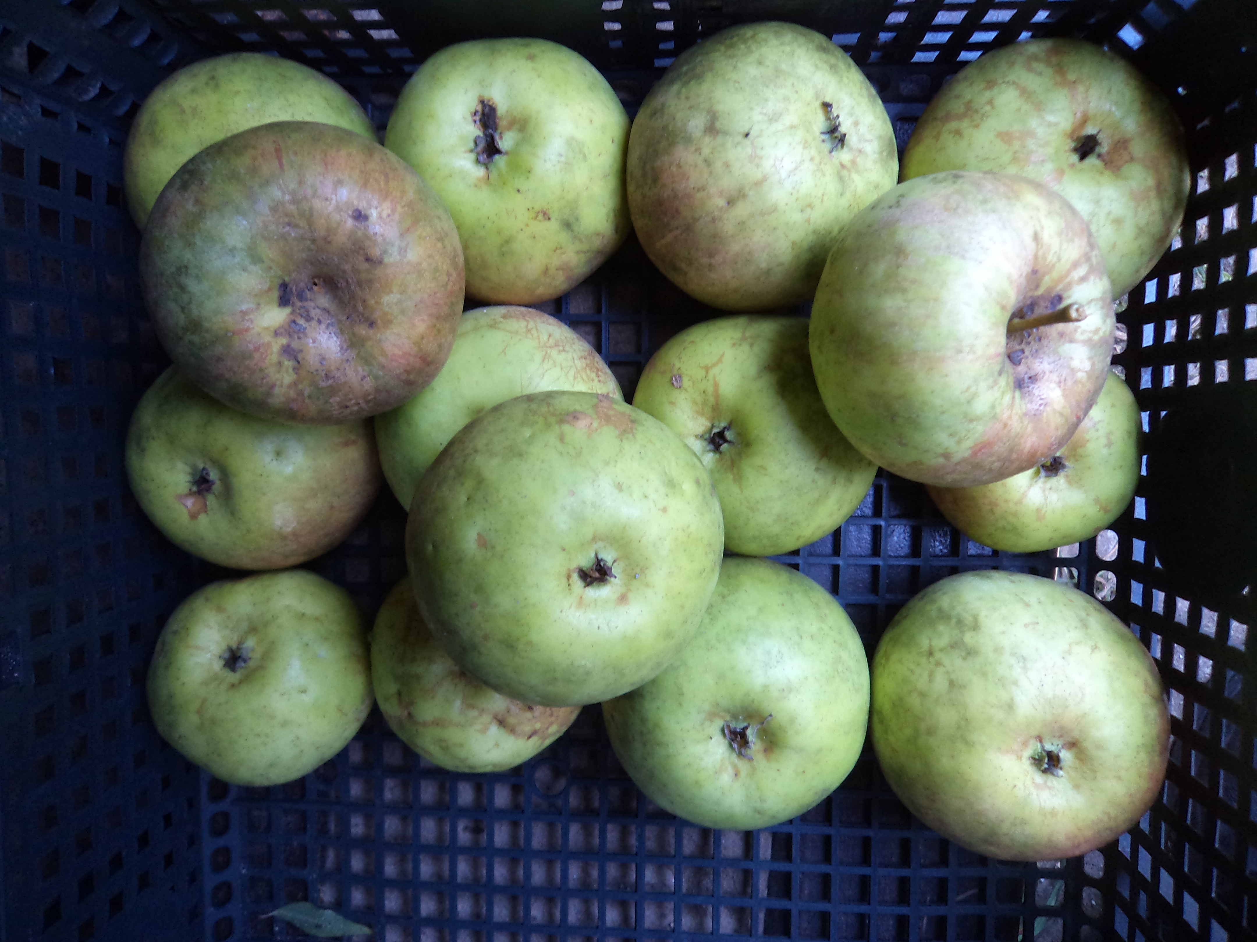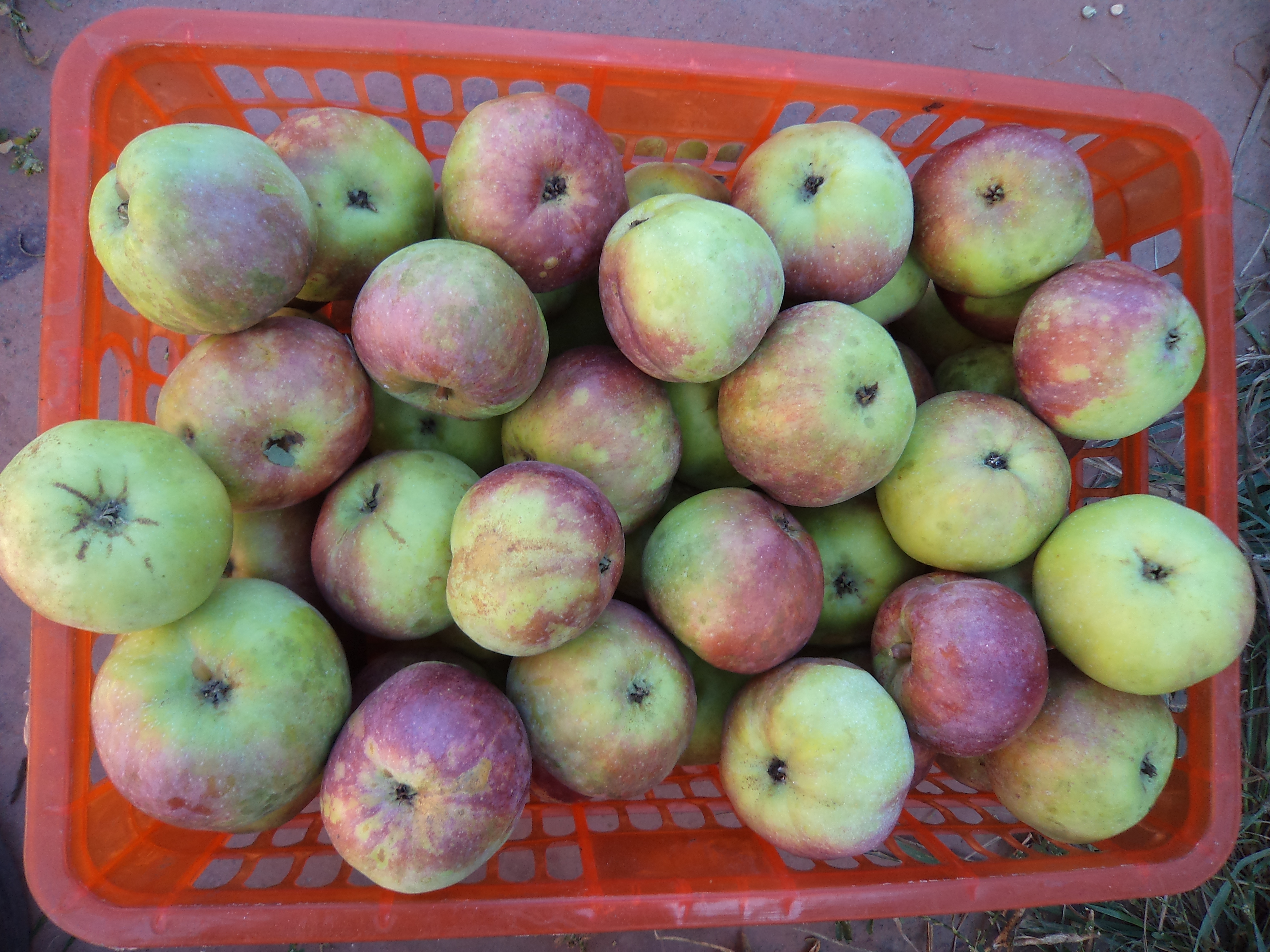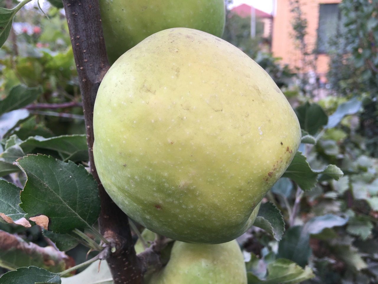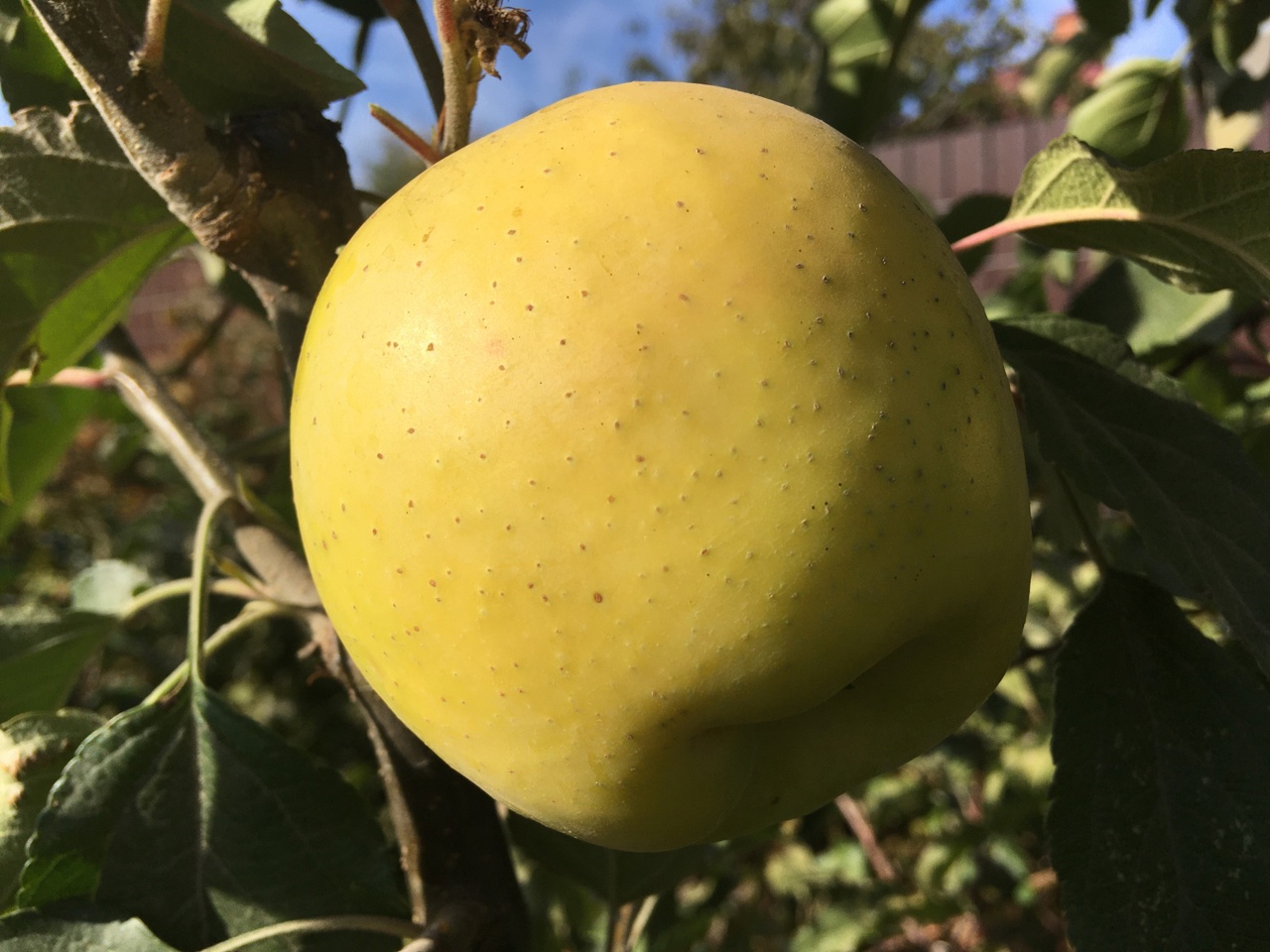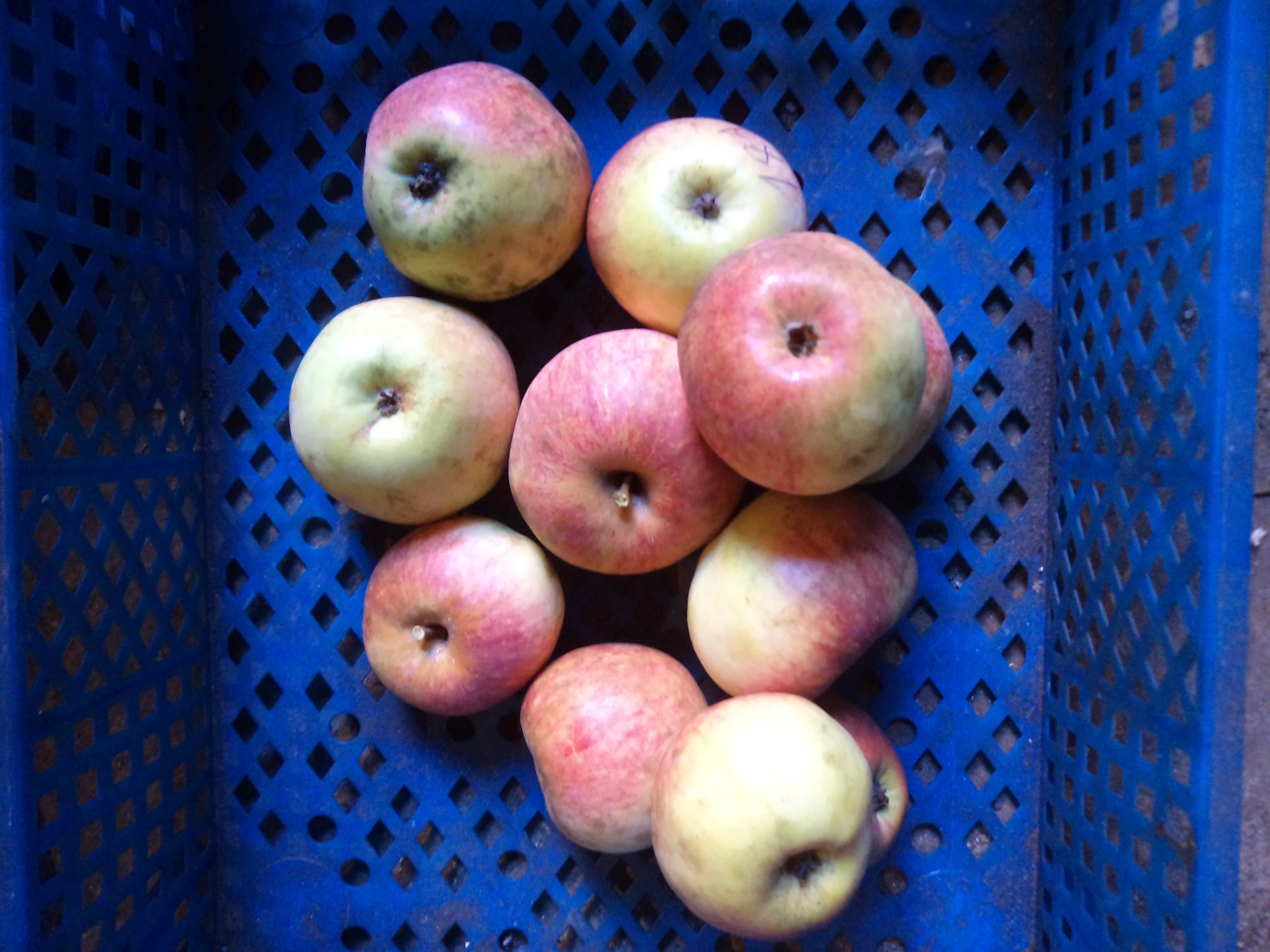Джинджер голд. Сбор в середине сентября, более месяца хранился в холодильнике. Наиболее крупные яблоки выдает прививка в кроне старой летней яблони. Один из самых вкусных потомков Голдена, максимально приближенный к оригиналу. В этом сухом сезоне яблоки очень чистые, хотя сорт не имеет иммунитета к парше. Жаль только яблоки не могут долго храниться даже в холодильнике, плотность мякоти заметно снижается, хотя до "полной ваты" ещё весьма далековато. Типичный осенний сорт.
