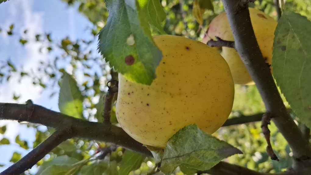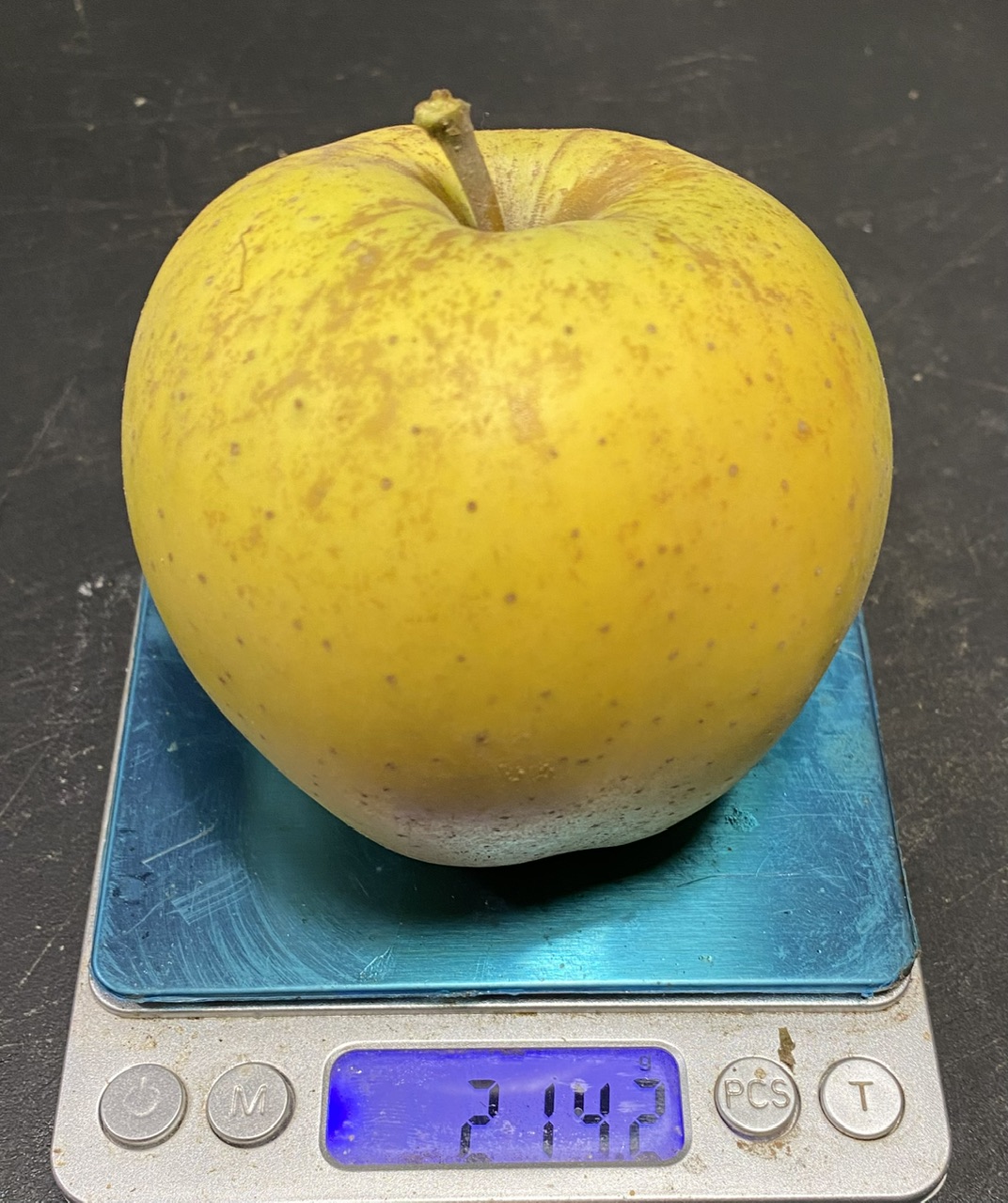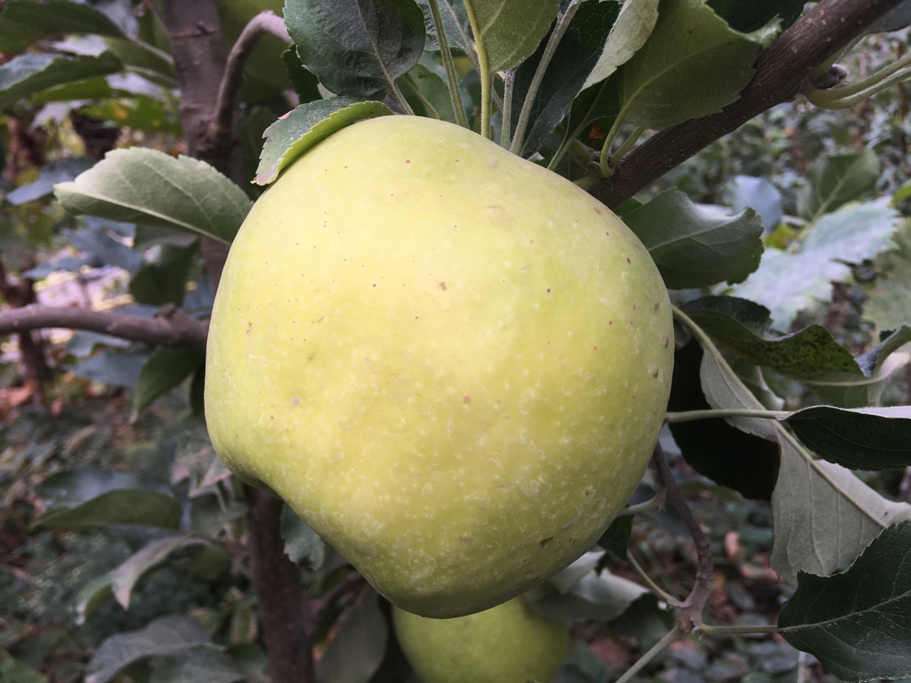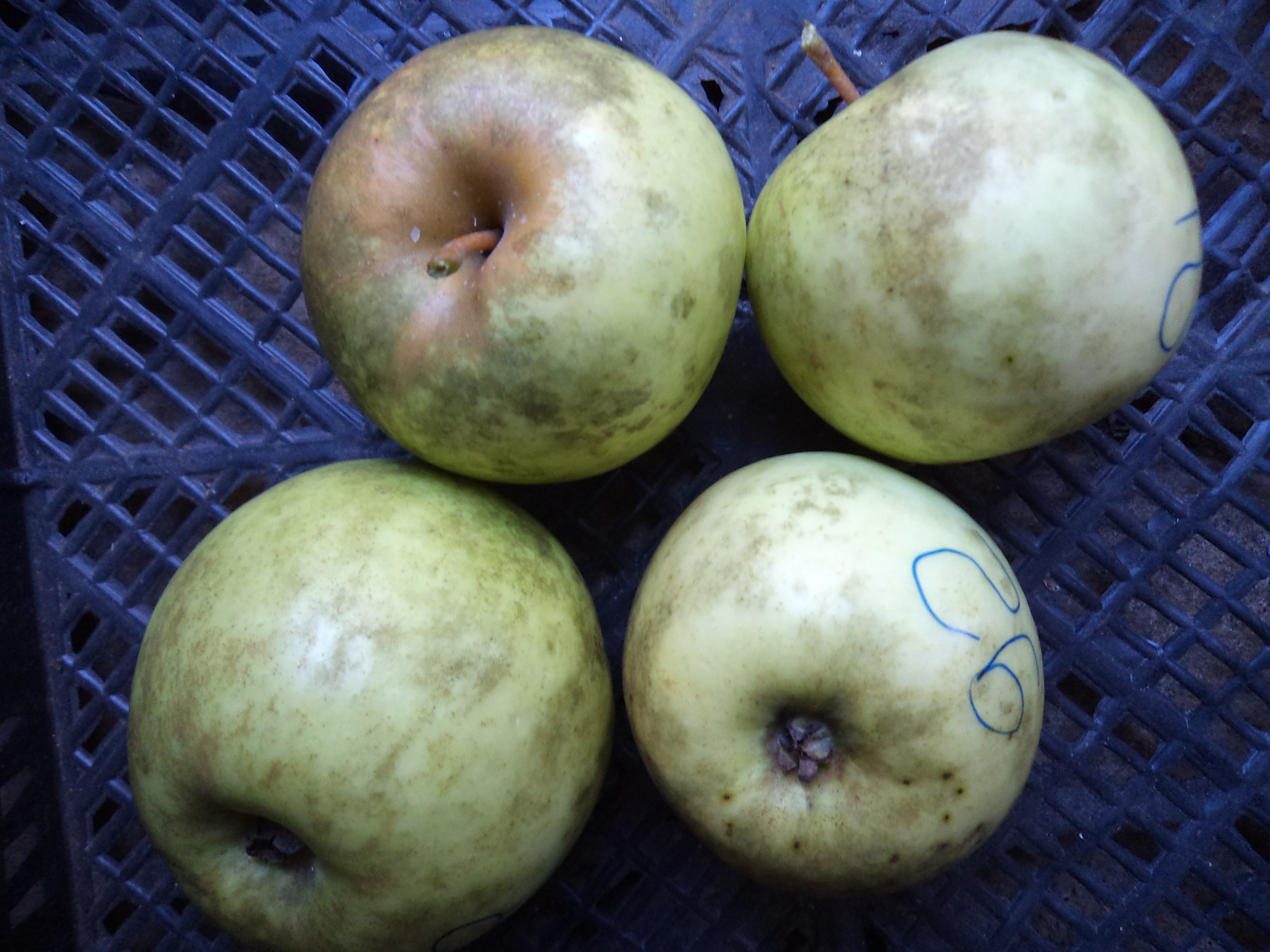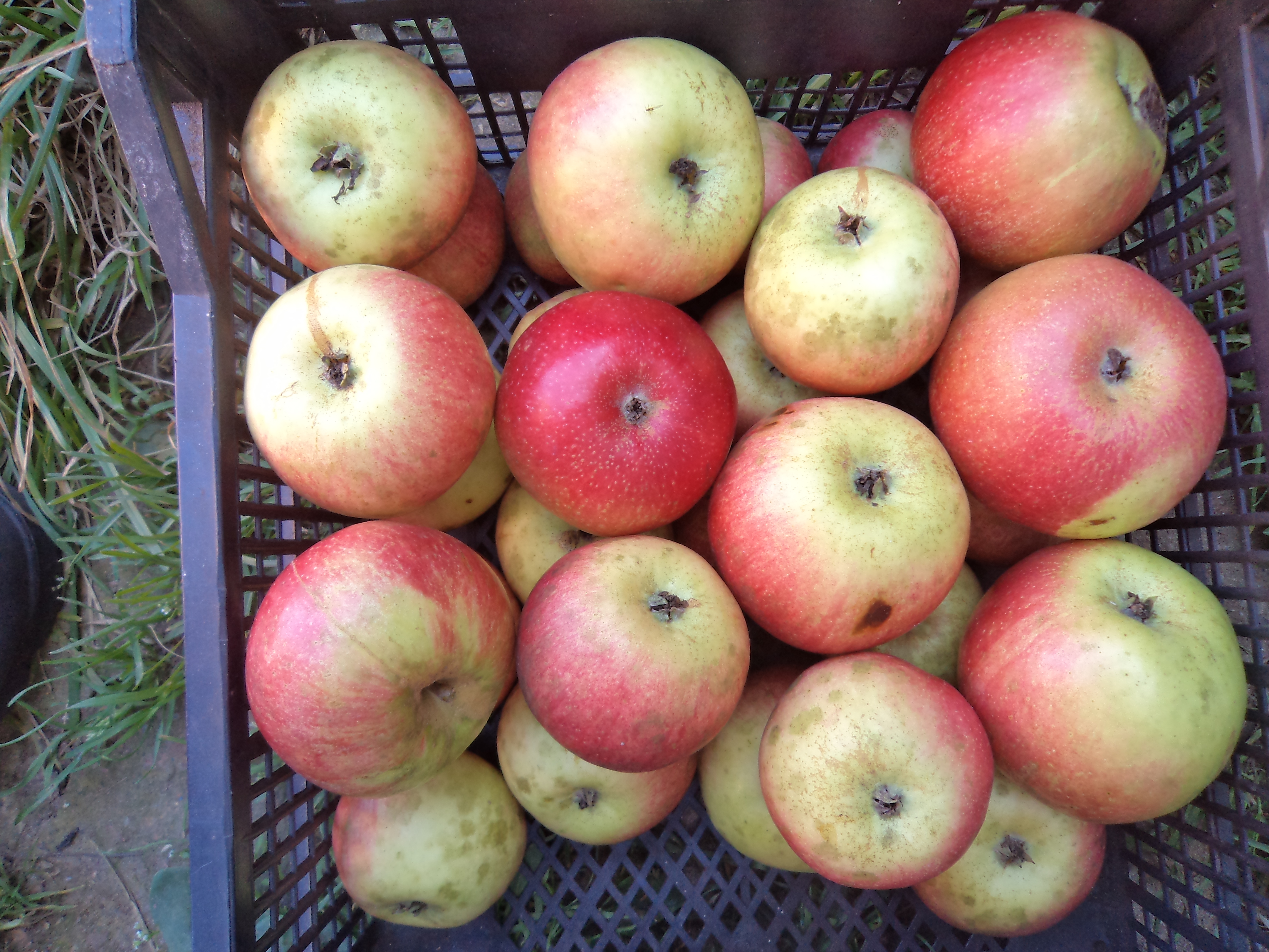 Джинджер голд. Сбор в середине сентября, более месяца хранился в холодильнике. Наиболее крупные яблоки выдает прививка в кроне старой летней яблони. Один из самых вкусных потомков Голдена, максимально приближенный к оригиналу. В этом сухом сезоне яблоки очень чистые, хотя сорт не имеет иммунитета к парше. Жаль только яблоки не могут долго храниться даже в холодильнике, плотность мякоти заметно снижается, хотя до "полной ваты" ещё весьма далековато. Типичный осенний сорт.