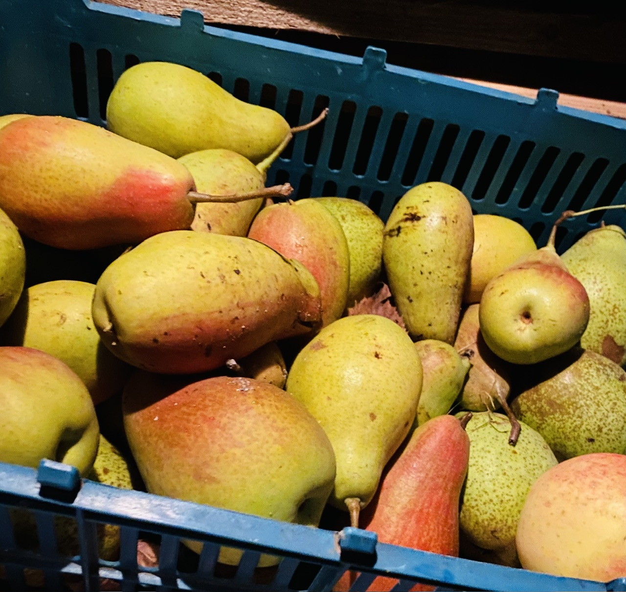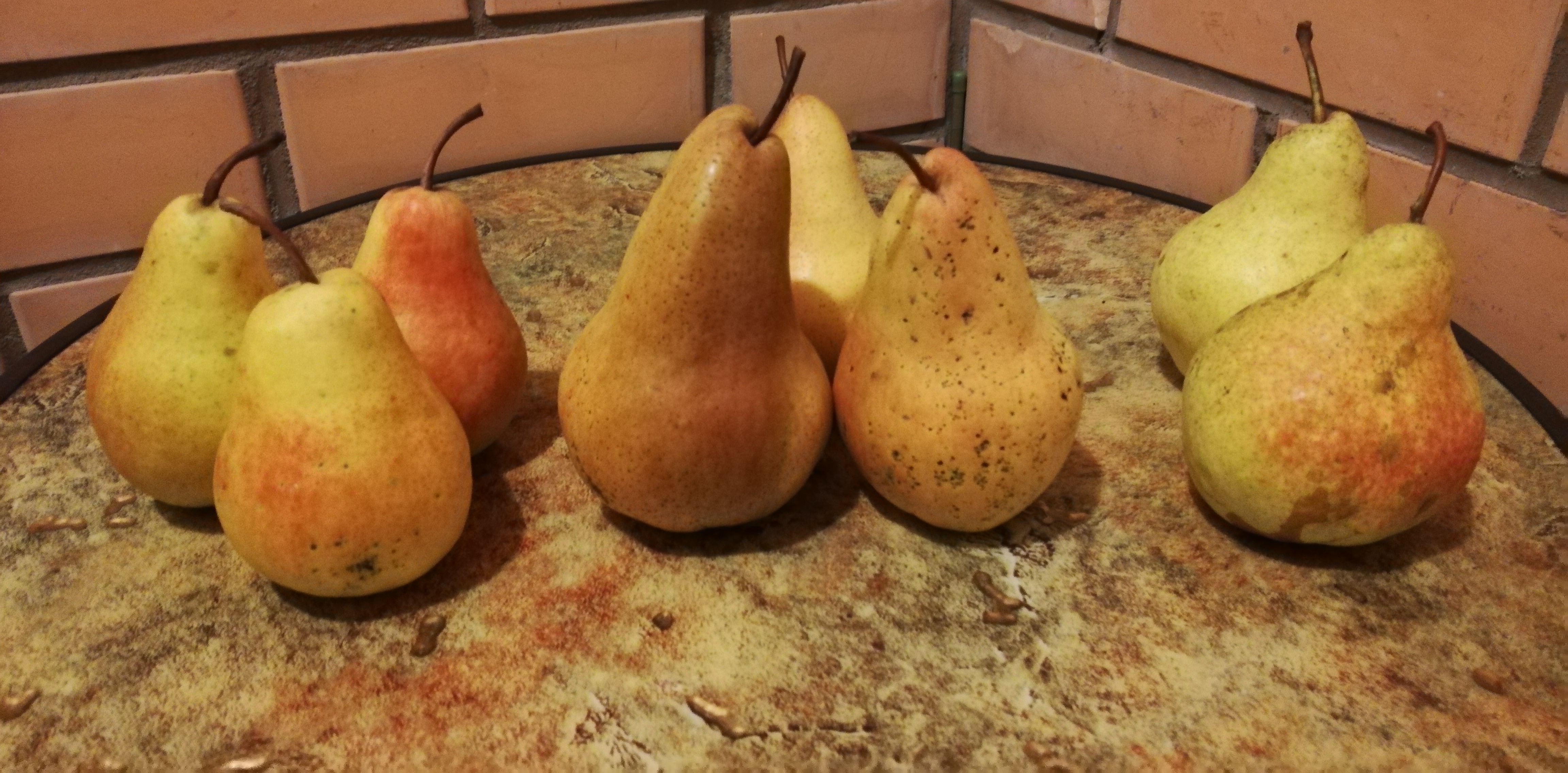 Фото плодов груш Береженая,Алла,Румяная летняя,Курземская маслянистая,Легенда-урожая этого года
