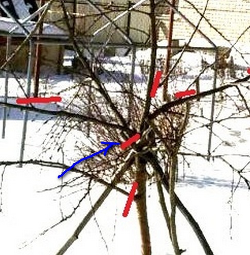 Masik, Zener, спасибо большое! Аспрус прочла, буквы знакомые, но...Трудно мне, в общем. Буду перечитывать еще. Скажите пжт, я синей стрелкой пометила - это удаление конкурента? длинной, почти вертикальной ветви, идущей сейчас параллельно стволу? Если да, то его пеньком оставлять или на кольцо?
