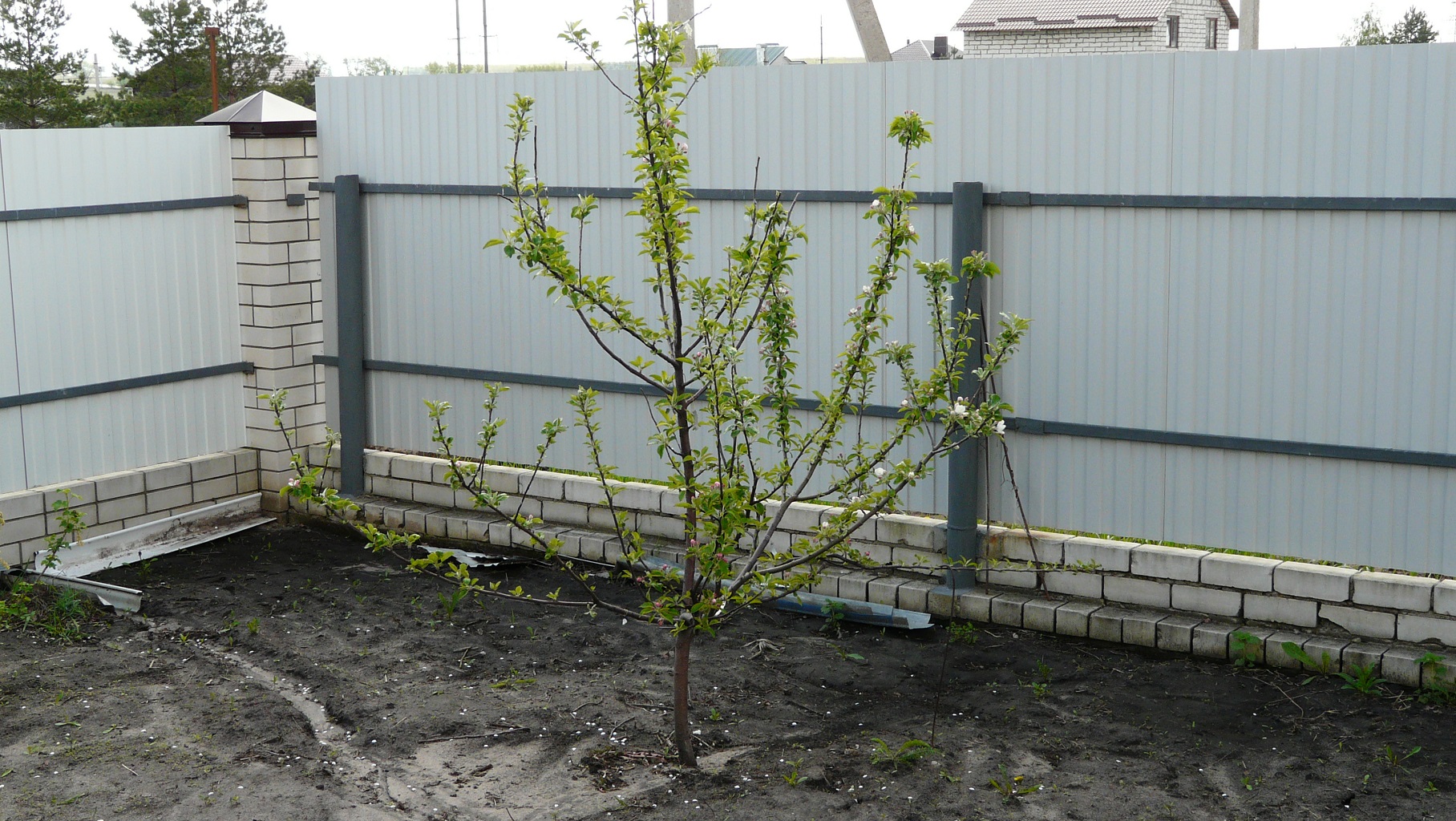 Старые кусты и деревья они вырубили,но оставили одну яблоньку.