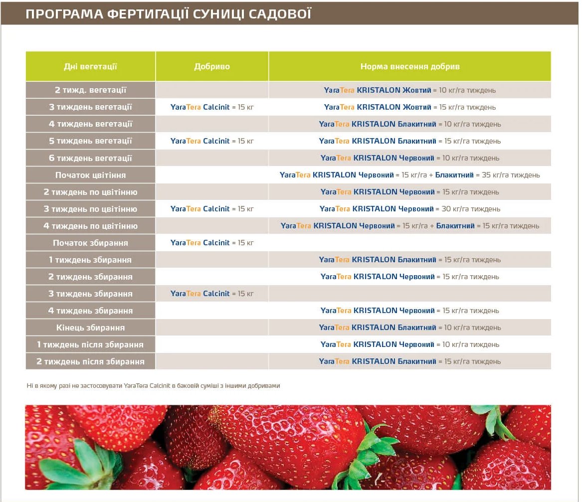 Акварин плодово-ягодый имеет формулу 12-12-35, т.е. по сути это полный аналог красного Кристалона. В предыдущие сезоны в фазу побеления первой ягоды использовал Акварин хвойный (N:P:K 3:11:35). В плане сахаронакопления хорошо помогает, но много читал про интенсивные технологии и склонился к мысли, что все-таки побольше нужно азота в процессе созревания ягоды, чтобы кусту хватало вытягивать ягоду не только первых 2-3 сборов и перешел в прошлом году на Акварин плодово-ягодный. Не могу сказать, что почувствовал разницу, но пока буду продолжать его использовать вместо Акварина хвойного. Еще обращаю внимание, что кальция много дают промышленники (2 подкормки до цветения, одна в фазу как начинает белеть ягода и еще одна уже в процессе плодоношения). В процессе плодоношения подкармливать не буду, а вот две подкормки пожалуй попробую. Сейчас делаю одну подкормку кальциевой селитрой в момент выдвижения цветоносов и планирую добавить еще одну сразу после завершения цветения (конец мая - начало июня)