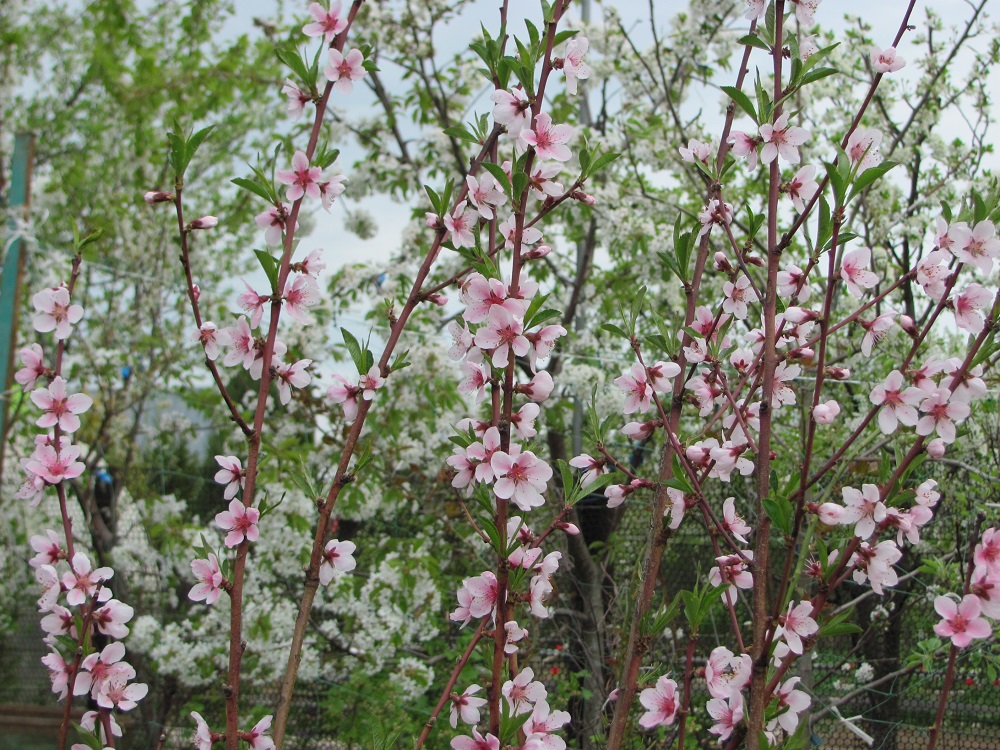 Старый персик открыл еще в конце марта,почки только начали набухать.Вчера дошли руки открыть два двухлетки.Приоткрыл и закрыл.Листья и цветы в полный рост...Ну что за весна?