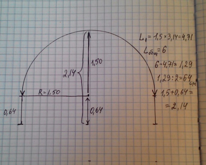 Когда захотела построить арочную теплицу, никакой информации по расчету материала не нашла. Пришлось вспомнить школу.
