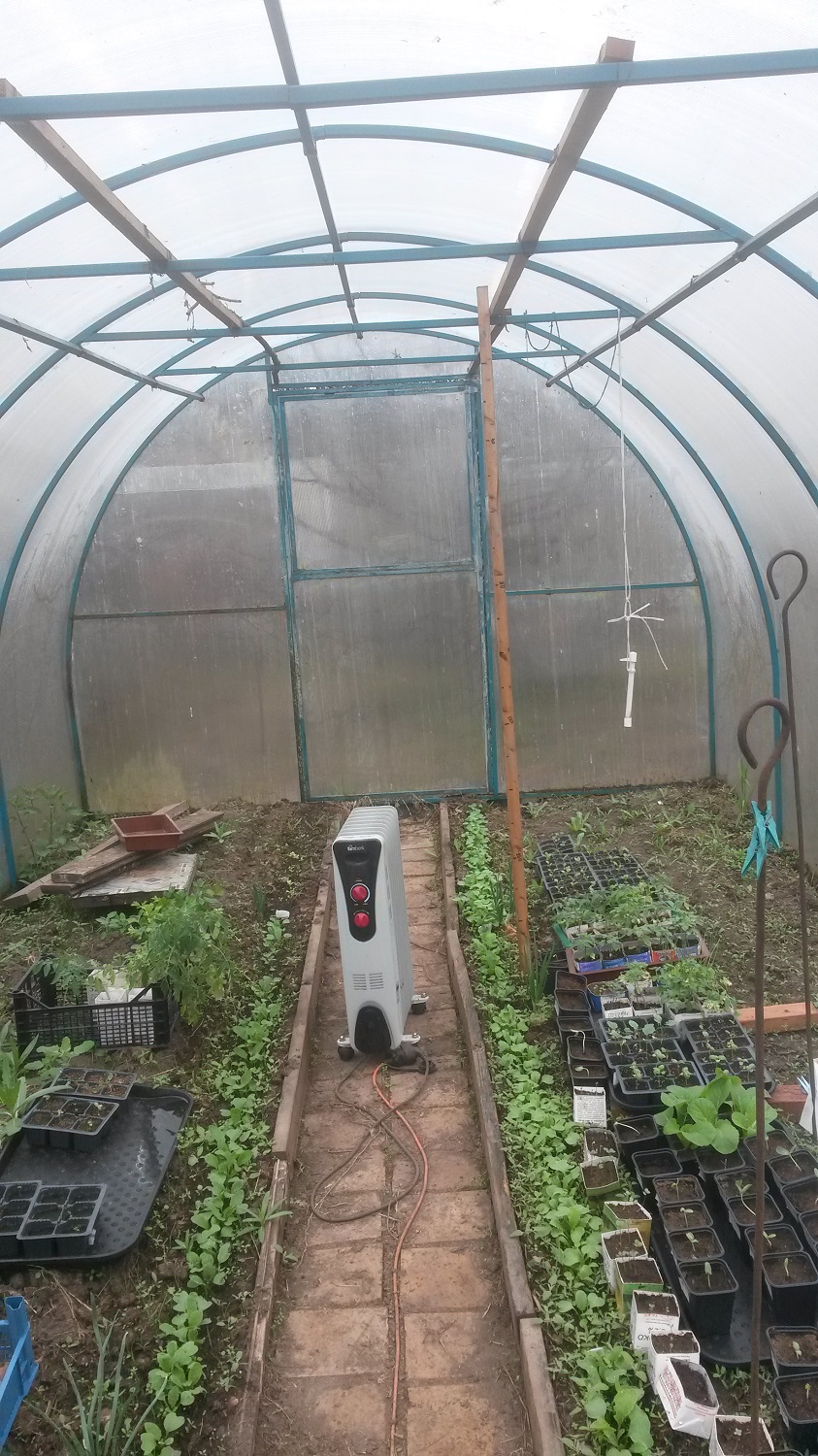 Раньше пролить не смогла, а сейчас вся теплица заставлена рассадой.
