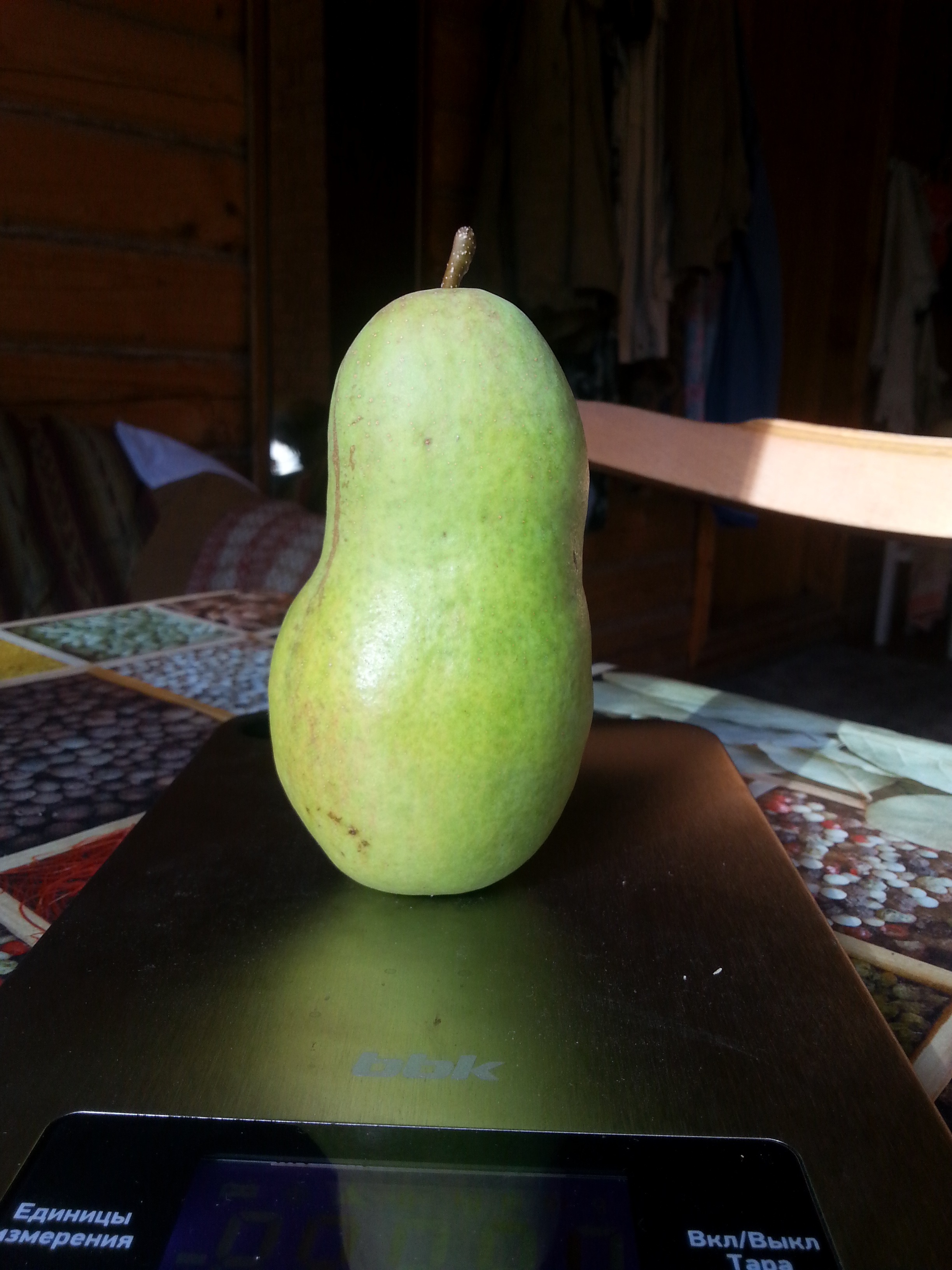 Коллеги, помогите опознать (отвалилась бирка), позднеосенняя груша, сочная, хрустящая, освежающе-сладкая, есть небольшие грануляции у семенной камеры... Очень характерная форма-похожа на плод арахиса только гораздо крупнее. У меня есть свои подозрения, но хотелось бы подтверждений.