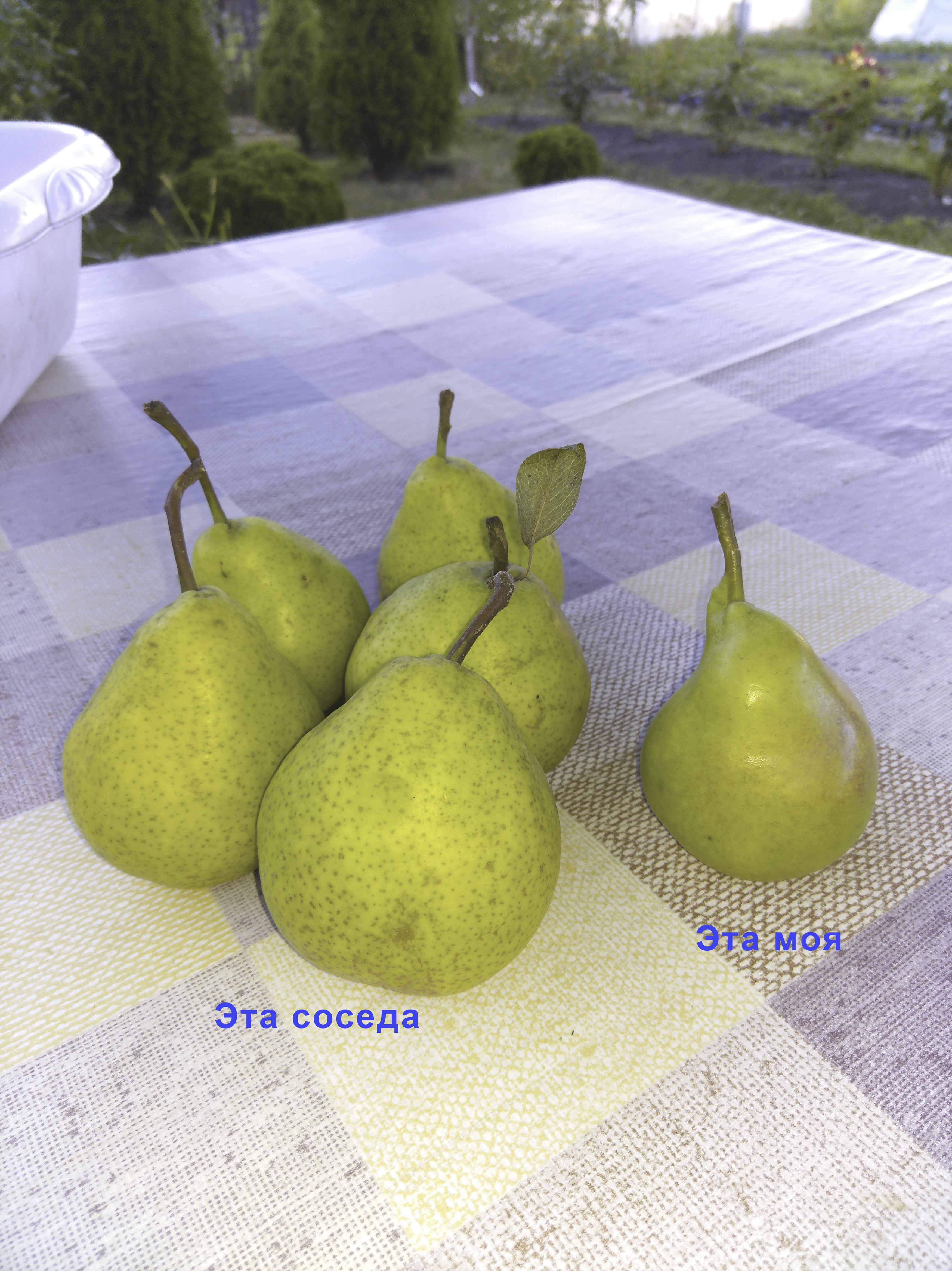 Я подозреваю что у меня либо что-то из семейства Бергамотов, либо из их потомков. Потому что форма как раз почти круглая, то что называют "бергамотообразная". И вот тут фотка где "продолжительность жизни" https://poferme.com/sad/derevya/grushi/ ... gamot.html очень похожа на мои груши. Если конечно они не воткнули первую попавшуюся.