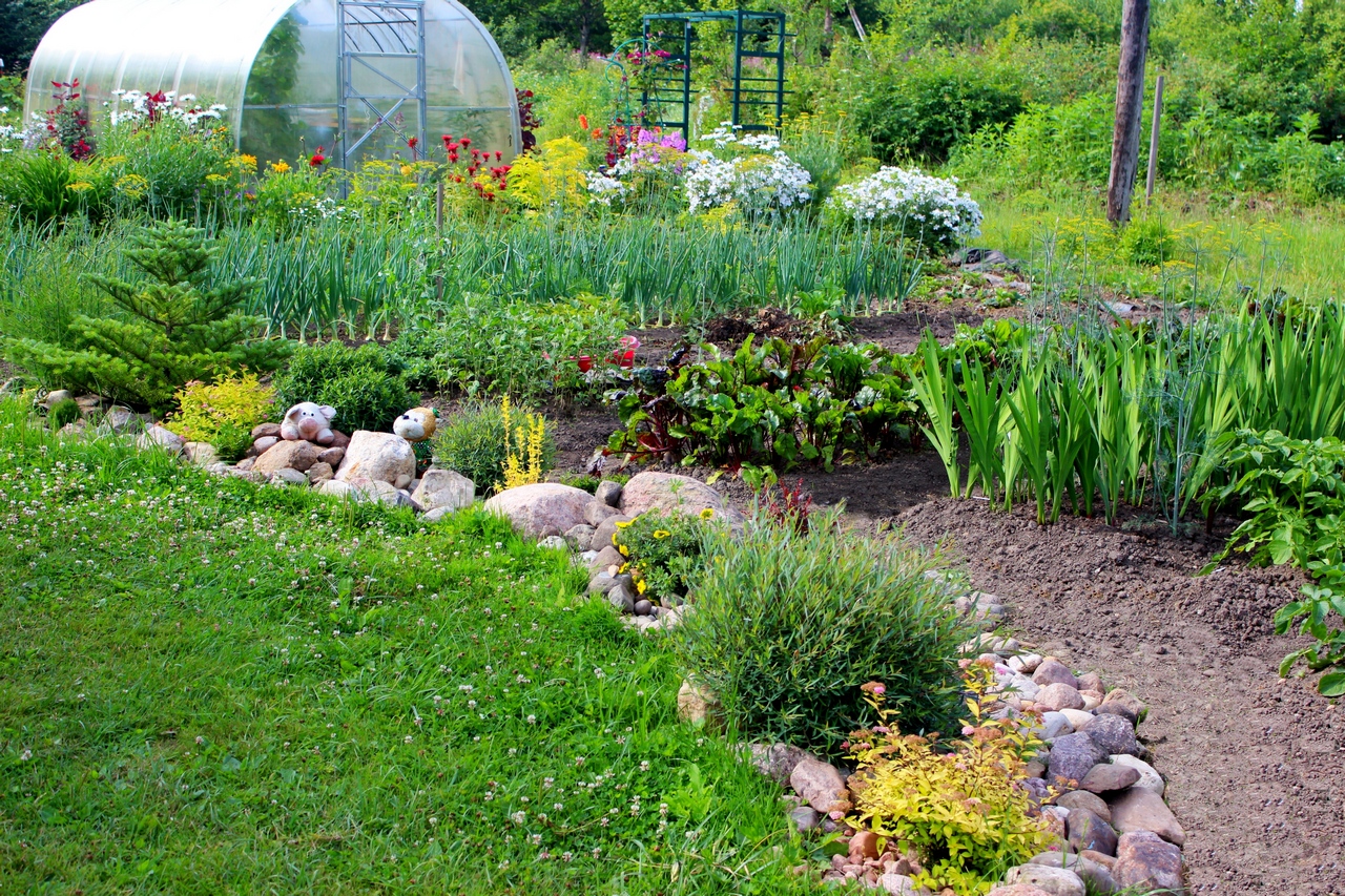 А я хочу такую засыпку сделать между каменной грядой и огородом для перехода. И не знаю как... Естественно, под камешками что-то не пропускающее солнышко, сверху камешки. Это ясно, а вот что придумать, чтобы камешки не засыпались землёй при прополке? В каменной гряде лежат большие камешки, их если что - вытащил и положил назад.А с мелкими ничего придумать не могу... На фото, когда вижу такие переходы, таю... У меня даже крупные камни зарастают...