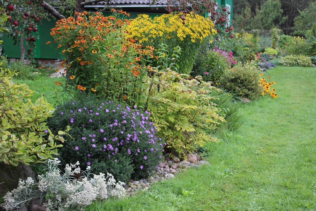 Я из-за этого и нырнула с головой в свой цветник. Конечно летом у меня не так пестро было, но достаточно, чтобы даже зять сказал, что многовато всего.Флоксы еще яркие были приткнуты по забору. Вообще каша!