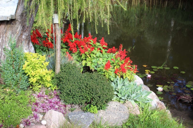 Галя, ты наговариваешь - отлично красное сочетается! И, согласна, у пруда хороши и злаковые! А как у меня, так они и в пруду растут... Не интересовалась их именем... что-то пита тростника.