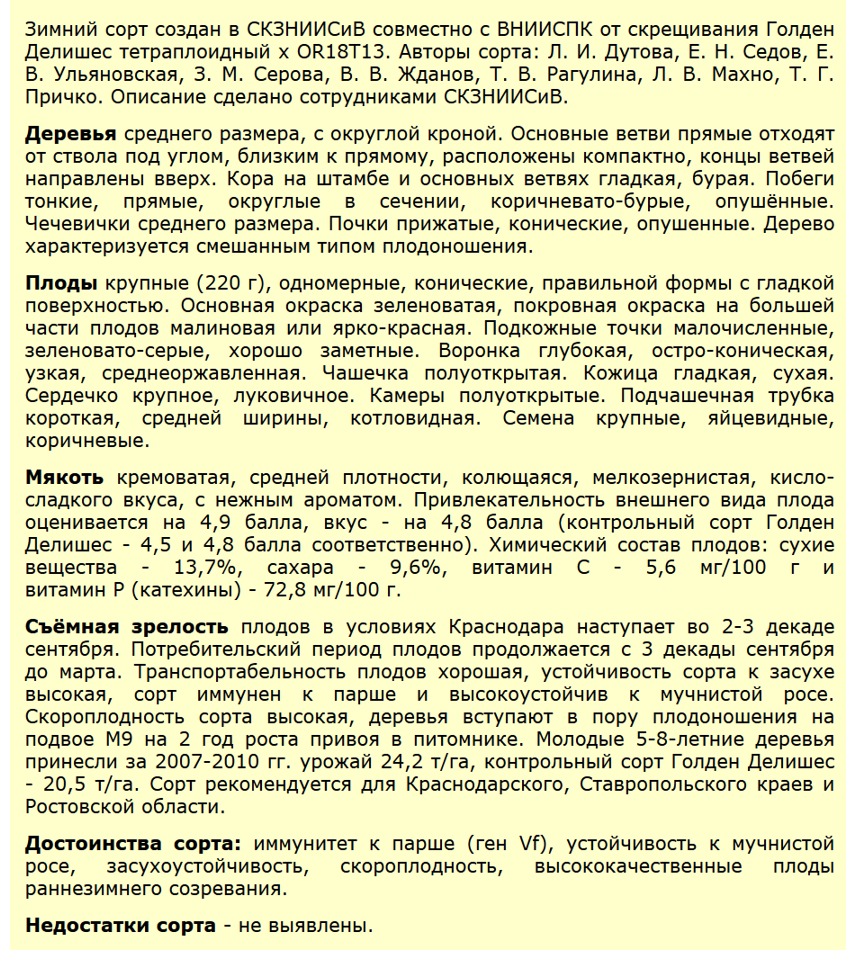 "Недостатком принято считать небольшой выход плодов товарного качества (красивых, без изъянов и приятных на вкус) — до 30% от всего урожая".