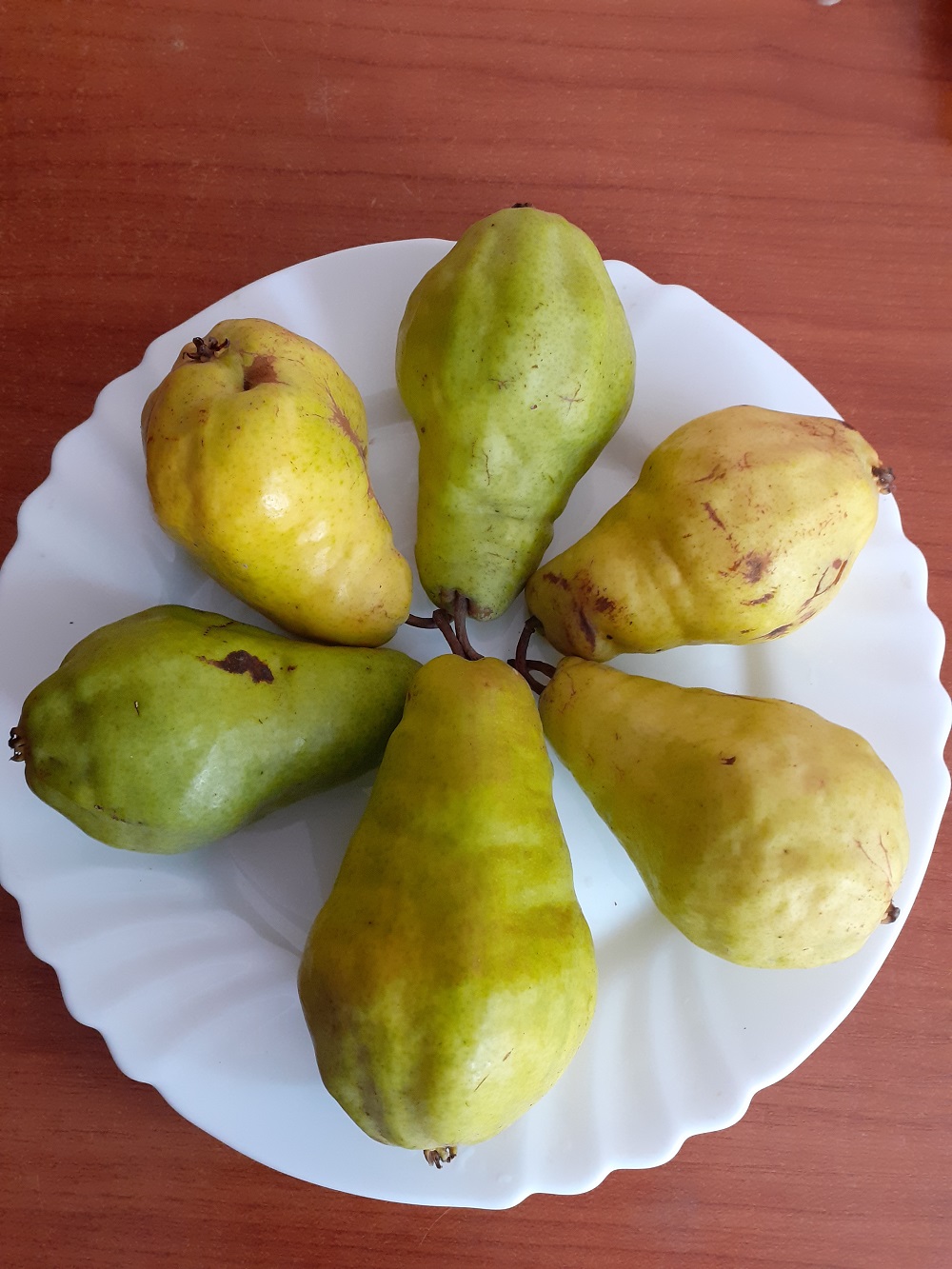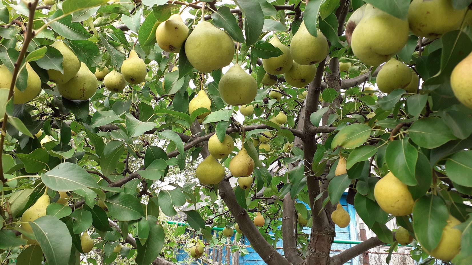 Благо соседка была в это время в огороде и успела быстро прибежать. В итоге 7л. ведро мне, 7л. ведро ей и 10л. ведро измочаленных груш в компост. Это с четырехлетки. Себе точно сажать не буду, потому как в связи с тем, что хранить такую прорву груш негде, делить урожай с соседкой регулярно будем пополам. Уход за деревьями мой, земля соседки - все честно.