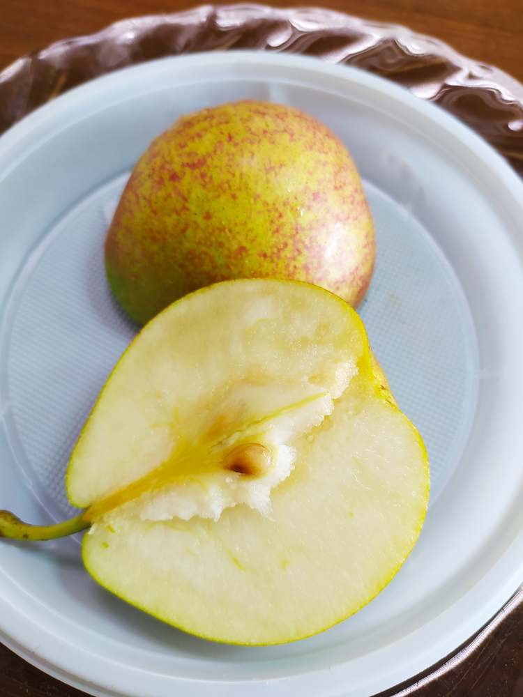 Поделил пополам и все довольны. Груши ещё больше завиднелись.
