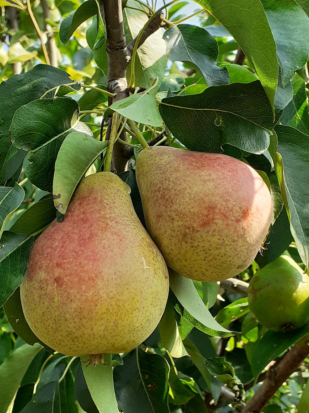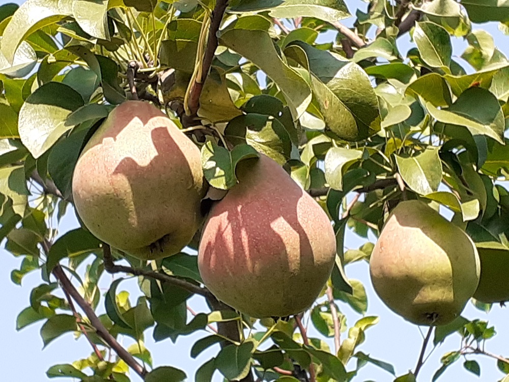 Нынешний год обязательно запомнится хорошими урожаями многих культур. Не остались в стороне яблони и груши, порадовали крупными плодами в больших количествах. Две моих старших груши Видная и Велеса (10 лет) и вовсе пошли на рекорд. Но очень примечательна реакция сортов на особенности сезона. Видная словно не заметила длительной жары и созревает в свои обычные сроки. А вот Велеса уже практически полностью готова, примерно на полторы-две недели раньше, чем в прошлом году. Такого ещё ни разу не было, чтобы сорта менялись местами в последовательности сбора урожая.