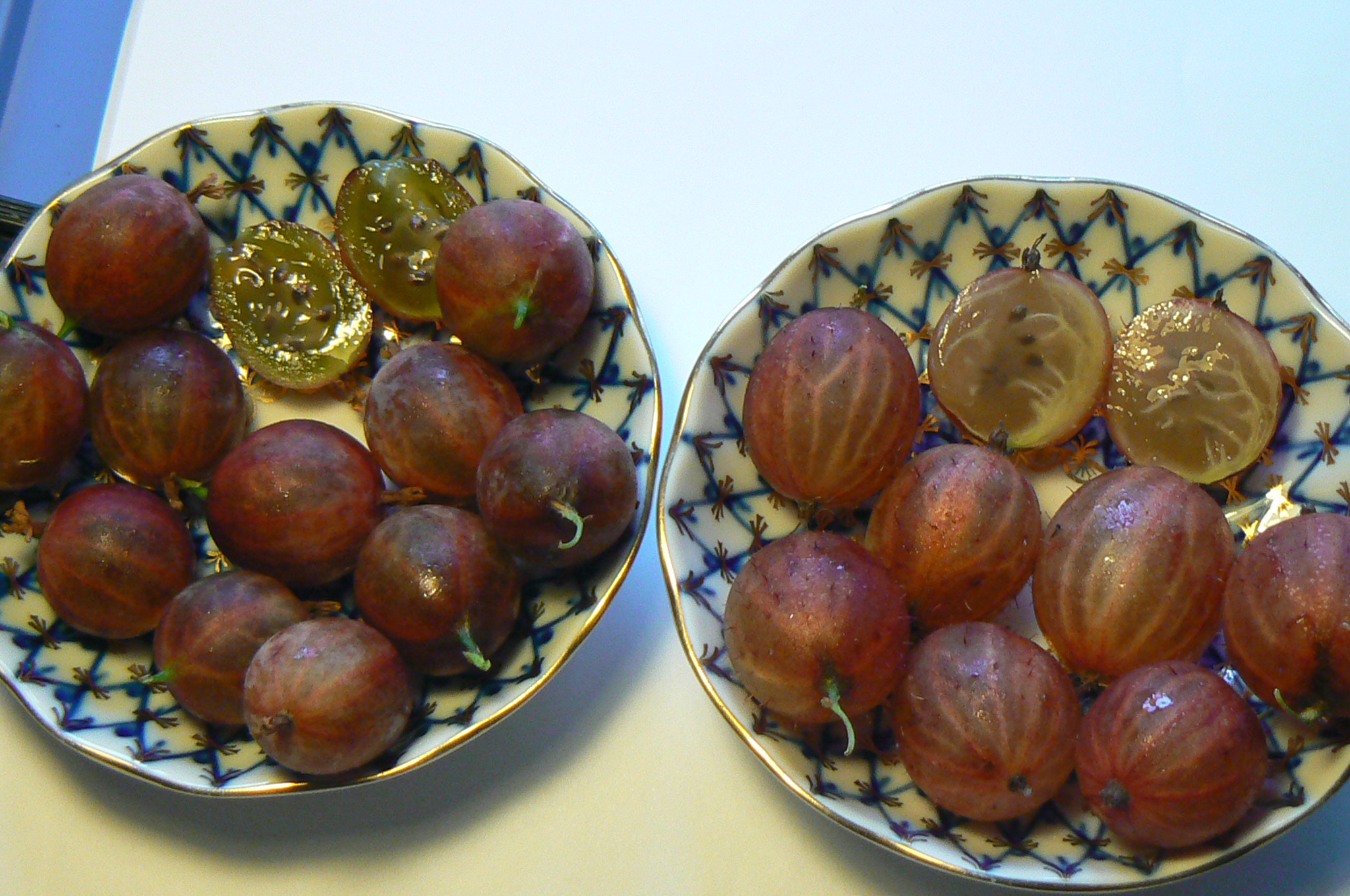 Видимо, выращен из семян. Вот и проявились во всей красе признаки предка материнского куста - сорта Авенариуса. А для него характерно: косо, вниз направленные побеги, средняя урожайность. Опушение: редко - простыми плюс красные железистые волоски. Ну, и вкус, конечно. А как бы Вы вкус описали? Столкнулась с этим, когда стала родственнику вкус описывать(сейчас не может приехать-попробовать). Сказала: " Кислота и сладость слились в одно. Такой ясный, но не резкий, а гармоничный, лёгкий вкус." А того крыжовника, который на фото в разрезе с зелёной мякотью, вкус было труднее описать(но он мне больше нравится). У того - кислота и сладость соединились до пресыщения, но внятности-равновесного состояния нет. Сожмёшь зубами ягоду... вдруг мелькнёт...то мёд, то квасок.