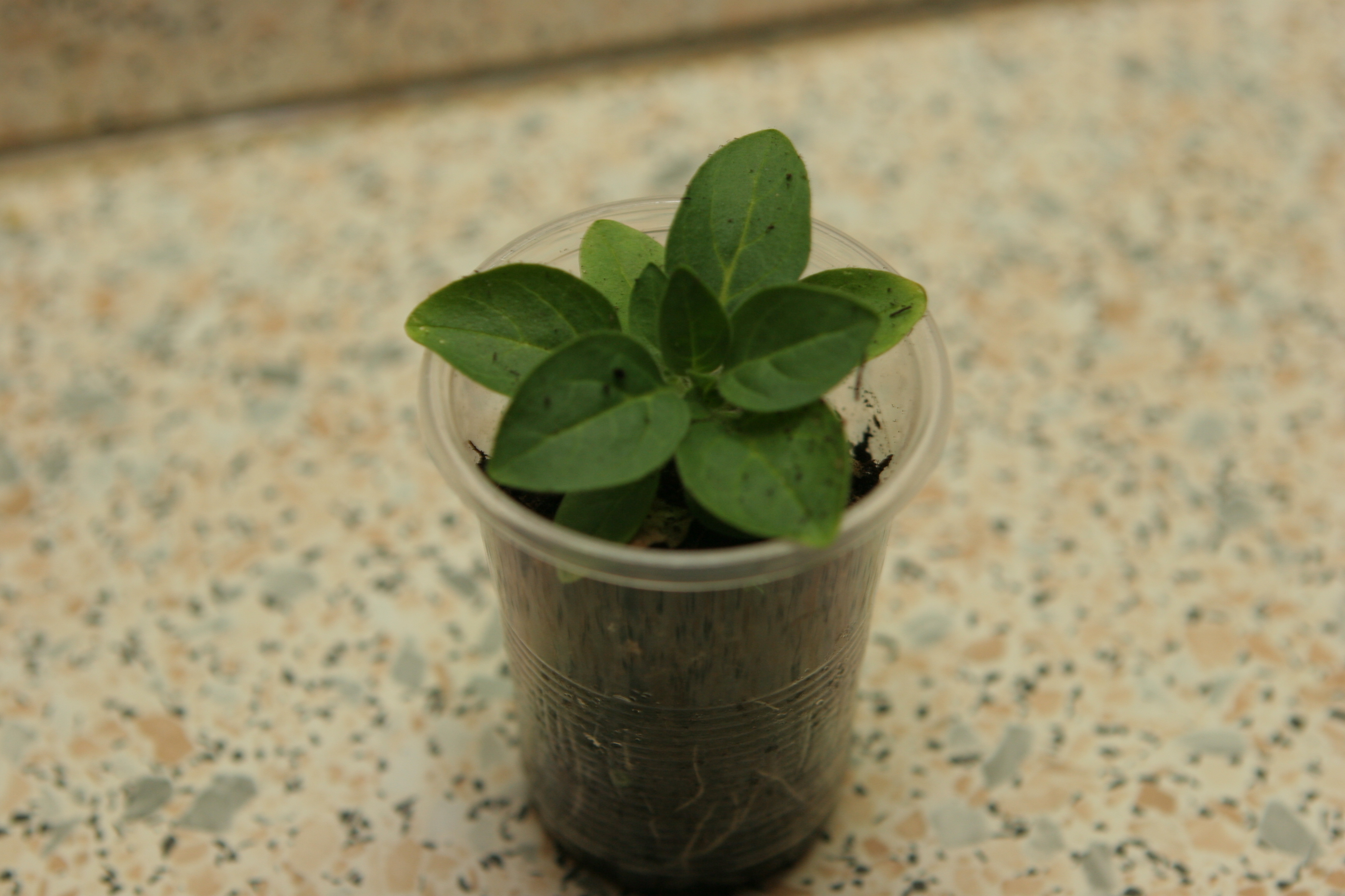 Петуния, выращенная под самодельной светодиодной лампой,без доступа естественного освещения