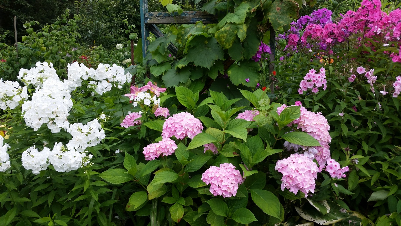 Ой, девочки, этот год весьма сложный, необычный. Клемики плохо цвели, розы тоже... да всё как-то было странно. А вот гортензии в этом году цвели, как хотела. Видно, и в самом деле им нужно много воды (как в этом году).