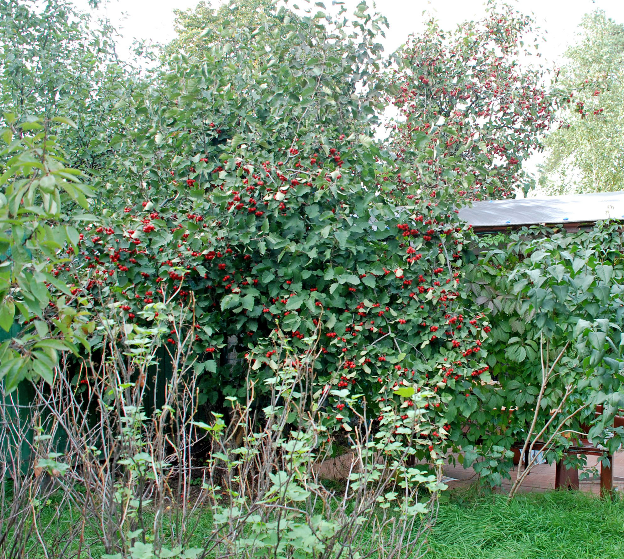 Как вариант- посадить Боярышник мягковатый. Растет деревом до 5-6 метров. Но можно формировать и держать компактно.