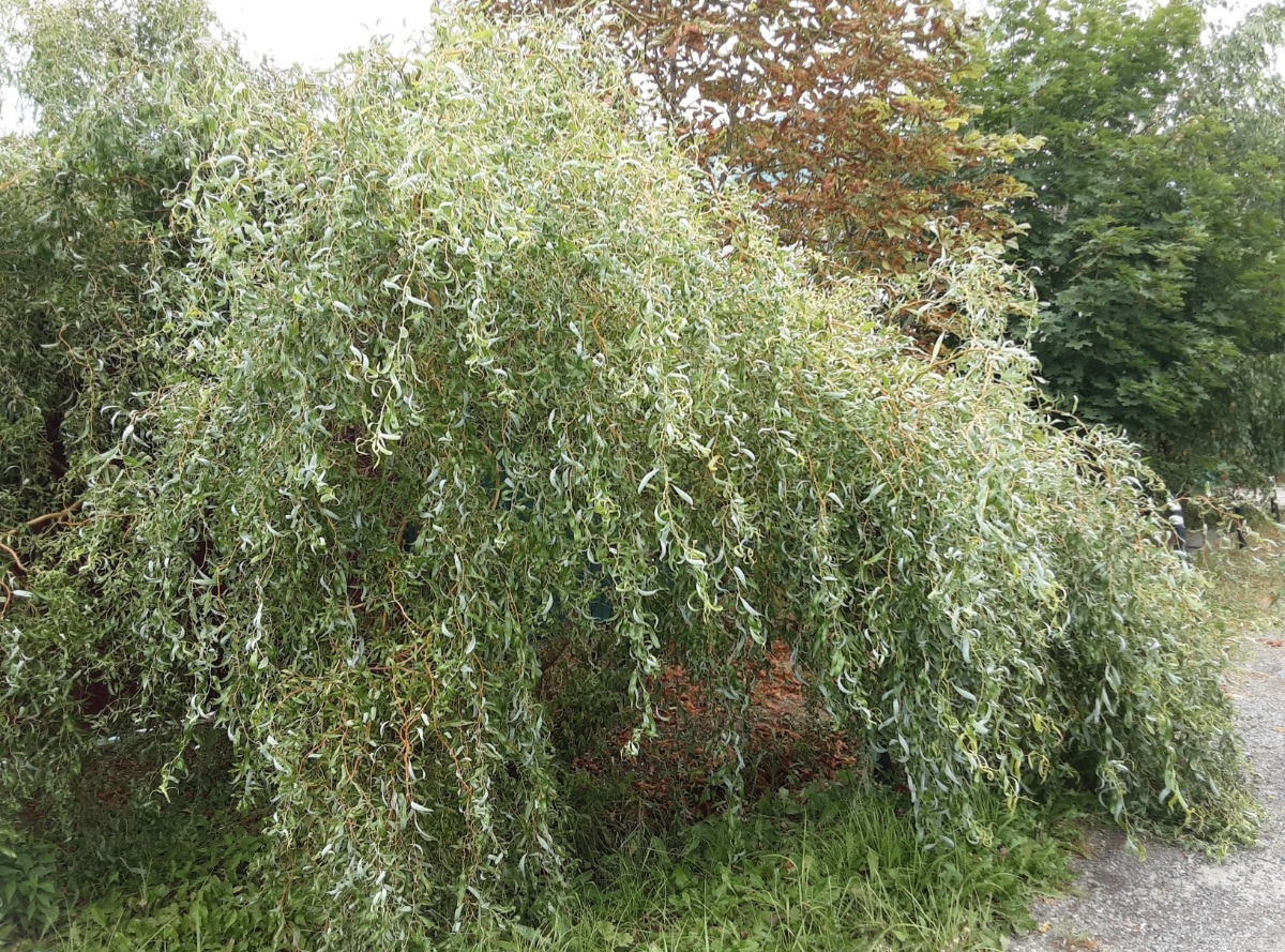 Татьян, этому дереву года 3-4. Сама видела, как хозяйка его полутораметровым хлыстом за забор высаживала. Осенью из-за окраски листьев ива украшением улицы стала. Без всякого хозяйского внимания растёт.